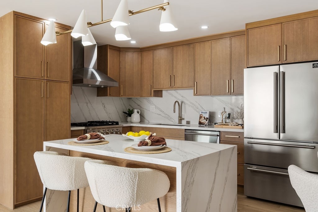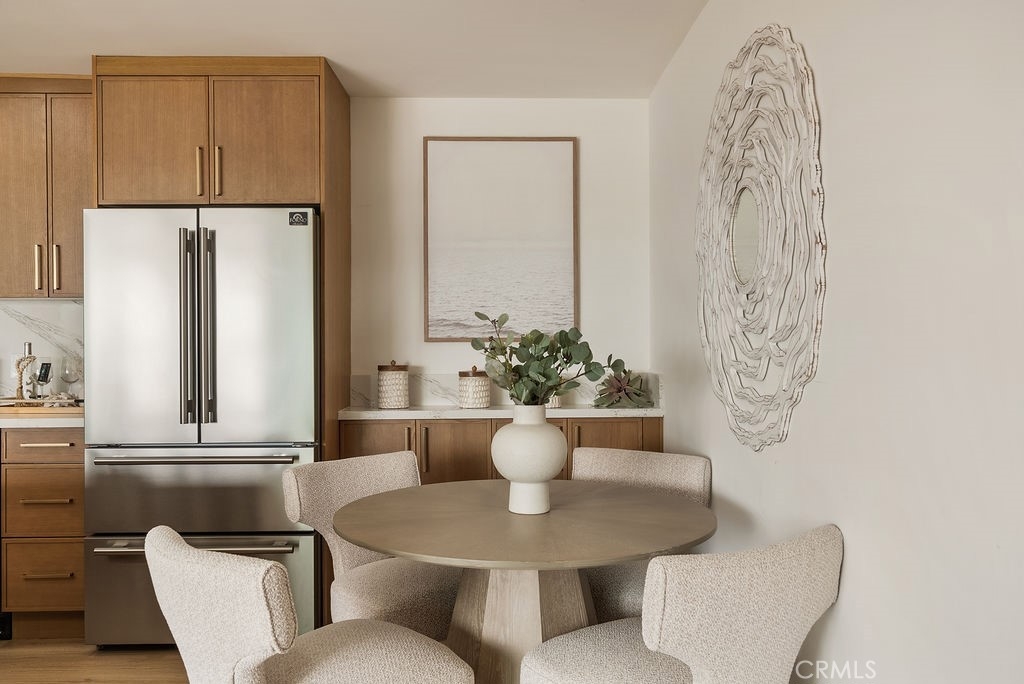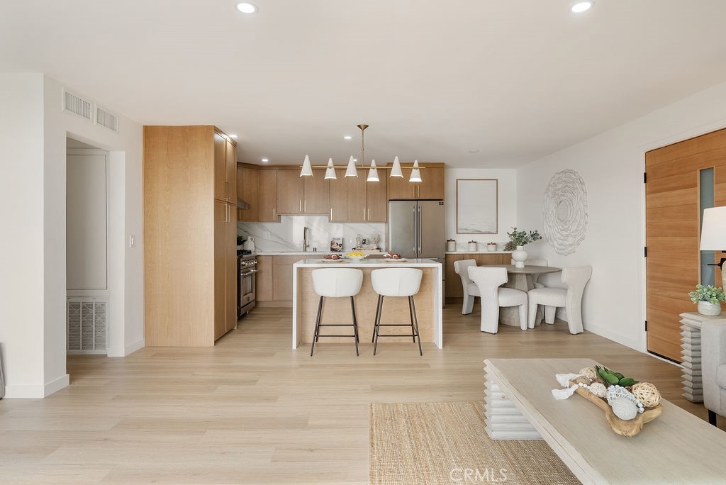 Stunning and fully renovated, this beach-facing condo with a private outdoor patio has been reimagined from top to bottom with exceptional attention to detail. The 2-bedroom, 2-bath residence offers 1,034 sq. ft. of modern coastal luxury, showcasing brand-new interiors crafted with contemporary elegance and smart functionality. Step into a bright, open layout featuring all-new windows, exterior slider doors, and an upgraded front entry door. The home includes a complete HVAC system with new ducting, new flooring throughout, upgraded baseboards and trim, stylish hardware, recessed lighting, and designer fixtures. At the heart of the home is a chef-inspired kitchen appointed with custom white oak cabinetry, a waterfall-edge quartz island, and a premium appliance suite. Both bathrooms were rebuilt down to the studs and finished with new waterproofing, modern tilework, high-end fixtures, custom glass enclosures, and beautifully designed vanities—creating a spa-like experience. Enjoy the comfort and confidence of a comprehensive renovation, paired with the serenity of your private patio just steps from the sand. The well-maintained midrise community offers lush landscaped gardens, a barbecue area, elevator access, secure garage parking with an assigned space, laundry facilities, a security gate, and a full security system—perfect for an effortless, lock-and-go lifestyle. Experience the best of coastal living, with boutique shopping, popular restaurants, and beachside strolls just moments from your door. Call for a showing today!