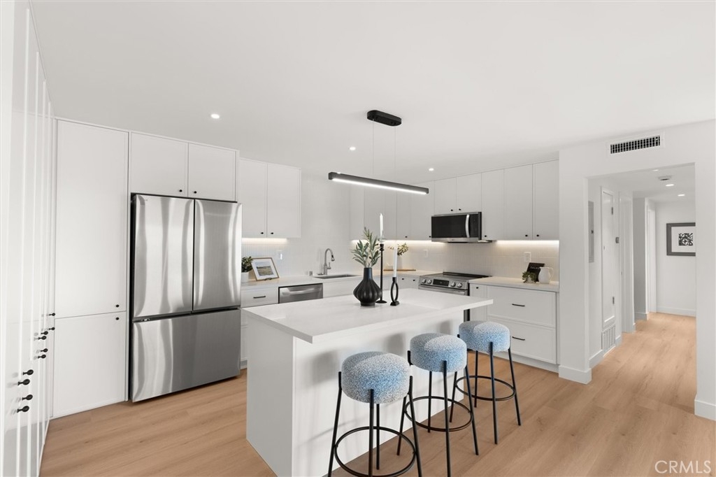 Motivated seller! The seller may offer credit toward the buyer’s closing costs or a rate buydown. Come and see this one-of-a-kind, beach-facing condo, with an expansive 550 sqft of exclusive outdoor private patio. This meticulously renovated 2-bedroom, 2-bathroom condo offers 1,034 square feet of smart living space, artfully designed with contemporary elegance and functionality with only one shared wall. Step inside and be greeted by the pristine ambiance of 100% new interiors. Every detail has been considered, from the new plumbing and water lines to the sleek flooring and trim. The bathrooms and all fixtures have been completely reimagined, showcasing the finest Kohler bathroom sink fixtures, toilets, and a luxurious master vanity. The heart of this home is the stunning kitchen, featuring all-new stainless steel appliances, including a 30” induction range, microwave hood vent, dishwasher, and refrigerator. The undercabinet LED lighting highlights the exquisite quartz countertops and custom cabinetry, creating a perfect blend of style and utility. Enjoy the comfort of a new heating and AC system, controlled via a smart Nest thermostat, ensuring your home is always at the perfect temperature. The living spaces are illuminated by all-new LED recessed lights, enhancing the modern aesthetic throughout. The exclusive-use side gate provides convenient access for your guests, making entertaining a breeze. This midrise residence offers a wealth of amenities, including a common area garden, barbecue area, elevator, secure garage with assigned parking, laundry facilities, bike room, security gate, and a comprehensive security system, all ensuring a lifestyle of convenience and peace of mind. Experience the elegance of coastal living with the sophistication of a smart, modern home at 1200 East Ocean Boulevard. Don’t miss this opportunity to make this exquisite condo your own!