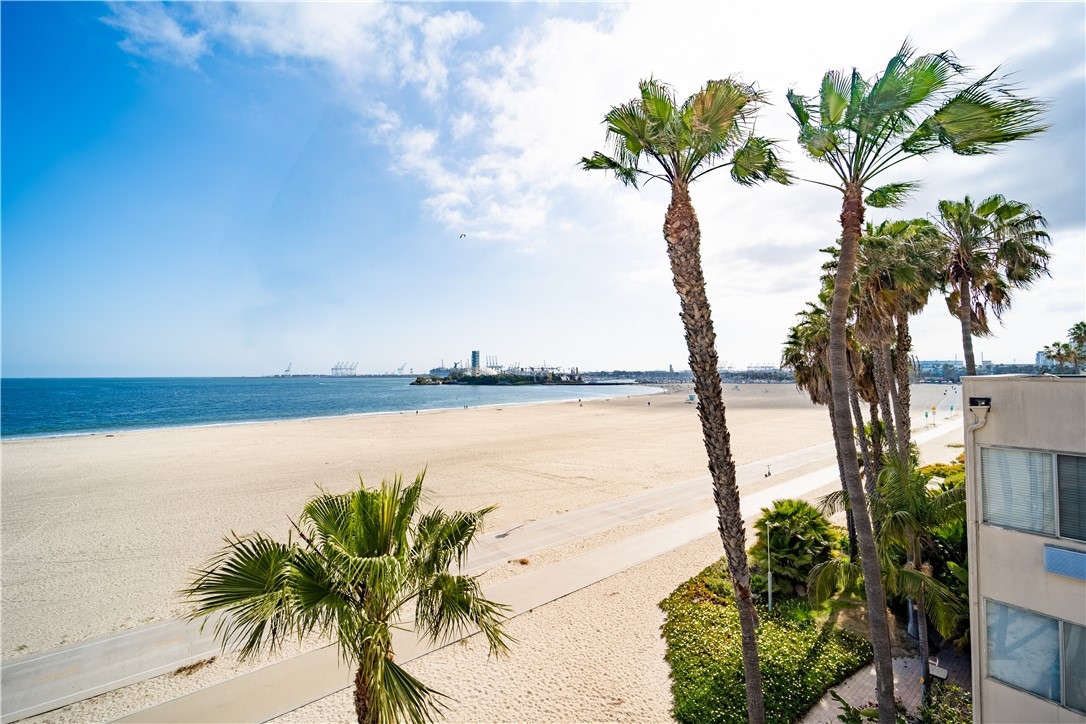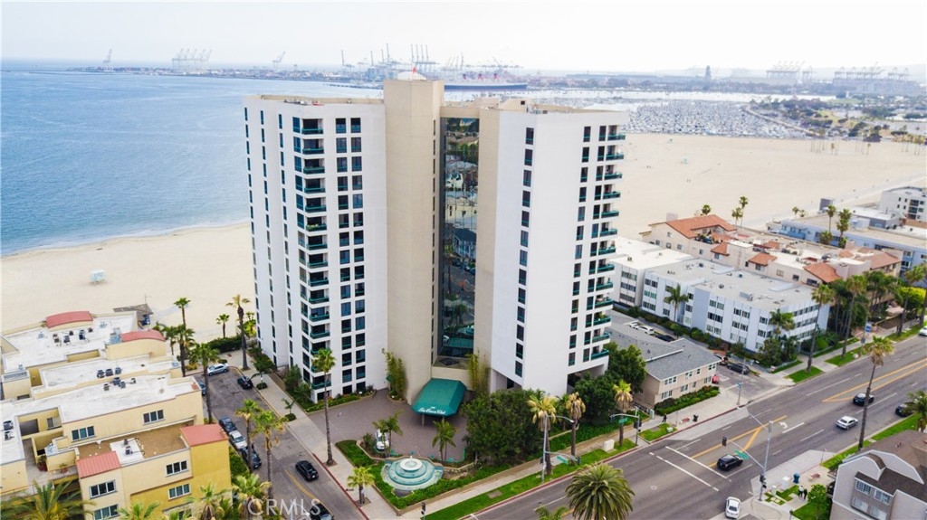 Welcome to The Ocean Club one of the most coveted ocean front condominium buildings in Downtown Long Beach. This 2 bedroom, 2 bath, 1540 sq.ft. condo has been tastefully remodeled and boasts spectacular views of the Queen Mary and Alamitos Beach and Ocean. Floor to ceiling windows with window shades, wood laminate flooring, recessed lighting and HVAC throughout. The kitchen features luxury appliances, beautiful stone countertops and custom cabinetry. Open living room with large area for dining showcases incredible ocean views. Primary suite with spacious walk in closet and large remodeled ensuite. One additional bedroom and separate full bath with Carrera Marble and basket weave tile in the shower. Side by side laundry area in unit. The Ocean Club features a 24 hour front desk security/concierge and spectacular pool side lounging area with tropical landscaping, spa and BBQ all with incredible ocean views and direct access to the beach. Additional amenities include fitness center, sauna, clubhouse with kitchen, beachside cabana room, dry cleaning service, secure package and mail deliveries. This wonderful ocean view unit comes with 2 parking spaces, extra storage and additional guest parking. Located just steps to the Long Beach bike path perfect for sunset walks and bike rides. Close to the Queen Mary, Aquarium of the Pacific, shops and restaurants on Pine Ave and the Catalina Express.