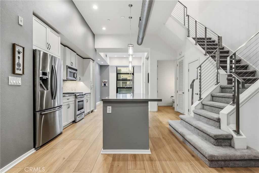 Experience the ultimate in sophisticated city living with this highly sought-after luxury townhome—where designer style meets modern comfort. At the heart of the open-concept first level is a show-stopping chef’s kitchen, featuring a premium Pirch faucet, beautifully refinished cabinetry, a generous island, and sleek Caesarstone countertops—perfect for cooking, entertaining, or simply enjoying your morning coffee. Upstairs, unwind in your luxurious primary suite, complete with an expansive walk-in closet and a spa-inspired bathroom boasting dual sinks, a rain shower, and a separate six-foot soaking tub. The second bedroom offers comfort and privacy with its own en-suite bath, while the versatile loft in between provides an ideal space for an office, creative studio, or cozy lounge. Designed with style and sophistication in mind, this home features 12-foot ceilings, recessed lighting, surround sound, exposed ducts, modern steel stair railings, custom window coverings, and durable vinyl floors throughout. Enjoy two private patios overlooking tranquil fountains—a serene urban escape. HOA includes FIOS internet, basic cable, and water, offering both convenience and value. Located in the acclaimed Promenade development, residents enjoy an impressive array of amenities: a pet-friendly community with complimentary guest parking and EV charging stations, a chic clubroom with full kitchen and pool table, outdoor social patio and bar, cozy courtyard lounge with fireplace, and a fully equipped gym and yoga studio. All of this in the heart of Downtown Long Beach, just steps from the beach, boardwalk, restaurants, museums, shopping, and nightlife. Explore The Pike, marina, Queen Mary, Pine Avenue, Belmont Shore, farmers markets, and more—all within a few blocks. Live the lifestyle you’ve been dreaming of—modern, connected, and effortlessly luxurious.