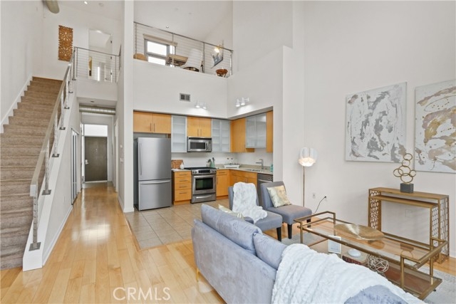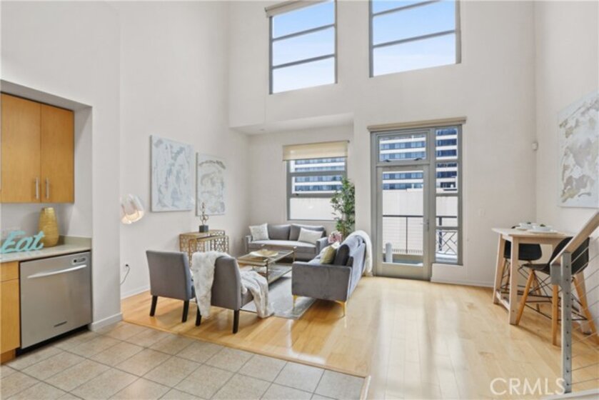WELCOME TO HOME 402! TOP FLOOR 2 STORY PENTHOUSE + 1 BED + 1 LOFT + 2 BATHROOMS + 2 BALCONIES + 24 FT. HIGH CEILINGS!! + 3 ASSIGNED PARKING SPACES + 1 STORAGE CAGE! A model-like bright, open, spacious home with incredible seamless flow. Primary bedroom sits on the main floor with its own walk-in closet. Hallway leading is lined with generous closets with shelves and an adjacent washer/dryer. Entire home has been freshly painted. Large windows and natural light throughout! Central Air/Heat and Hardwood Floors all over except for Tile in kitchen and bathrooms. Kitchen features a stainless-steel appliance package with a brand-new refrigerator. The cozy living room area stands out with sky high 24 ft ceilings and a balcony! Living Room wall has oversized large windows from top to bottom offering bright Southern Exposure! Stairs lead up to the large LOFT that sits atop on the 2nd Level of the home with its own full bathroom and Huge Oversized Balcony! LOFT can function as a workspace/office, 2nd bedroom, flex or guest bedroom area. VERY RARE 3 assigned parking spaces in the subterranean garage for your vehicles or opt to rent one out to another resident for income. A deeded assigned storage cage on level 2 of the North Building included as well! Internet & High Speed FIOS Internet included in HOA. The 133 Building Features: Guest parking & Electric Vehicle Charging Stations! Shared Bike Room. Luxor Package Storage System. Additional storage cages for rent when available. PET Friendly Building! Water, trash, sewage all included in HOA! Modern club room w/ TV, shuffleboard, sofas, kitchen, outdoor courtyard lounge w/ firepit, World Class Updated Gym with Yoga Studio. 0-5 blocks away from everything! Beach, boardwalk, grassy park, restaurants, bars, night life, metro train, E-scooters, Uber, Lyft, museums, grocery stores, shopping, outlets, freeways & entertainment, movies, farmers markets, ice cream parlor, Grand Prix, The Pike, Nike, H & M outlets, marina, Queen Mary, jet skis, boat rentals, paddle boarding, Pine Ave, Belmont Shores!