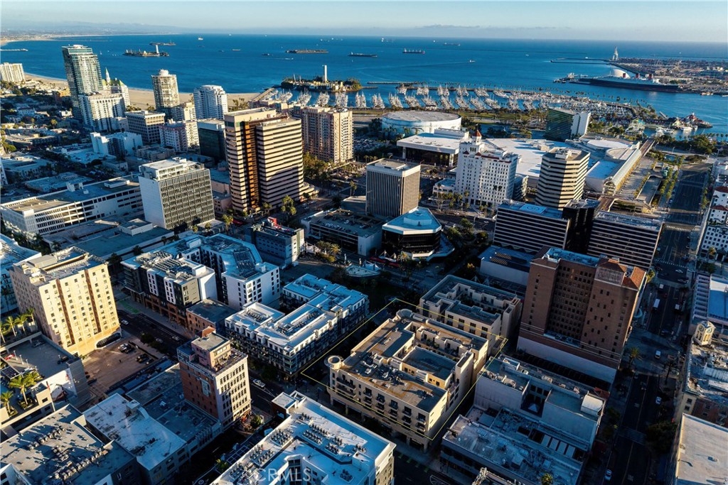 Discover the ultimate expression of coastal luxury and vibrant downtown living, where modern design meets the heartbeat of the city. This ultra modern space is far more than a home, it is a lifestyle destination. With an impressive 1,050 sq ft of bold open concept living, this is the largest one bedroom layout in the building and a rare opportunity to live expansively in one of Long Beach’s most desirable urban communities. Vaulted ceilings enhance the airy atmosphere while natural light illuminates every corner. The massive living and dining area with a nook offers flexibility to design the perfect entertainment space, home office, or relaxation zone. Rich hardwood and designer tile flooring add warmth and style, while the quartz gourmet kitchen features stainless steel appliances including a brand new dishwasher. Additional conveniences include AC, in-unit laundry, a modern tankless water heater, and a large hallway storage closet. The spacious bedroom offers excellent storage with double closets. Enjoy Promenade facing views from your private balcony, where you can start your morning with sunshine and unwind in the evening as city lights shimmer. Two gated underground parking spaces plus a significant deeded storage cage provide convenience rarely found in urban living. Located in the exclusive beautifully maintained building, the amenities include guest parking, EV charging, a bike room, a stylish club lounge with a kitchen, television, pool table and shuffleboard, a gym with a yoga studio, and an outdoor courtyard with lounge seating and a cozy firepit. High speed internet, water, trash, and sewage are included in the HOA, providing comfort and ease for homeowners. The location is unbeatable, with the beach, boardwalk, marina, Pike Outlets, Shoreline Village, restaurants, cafes, shopping, nightlife, parks, entertainment, and the Metro line all just moments from your front door. Annual Grand Prix excitement and ongoing waterfront development keep this community vibrant and energetic. Looking toward the future, the 2028 Olympics will bring global attention and major international events to Long Beach including beach volleyball, coastal rowing, sailing, target shooting, sport climbing, handball, canoe sprint, and rowing. Live at the center of world class culture, sports, and coastal excitement. Luxury, location, and lifestyle come together where the ocean meets the city and your future feels inspired.