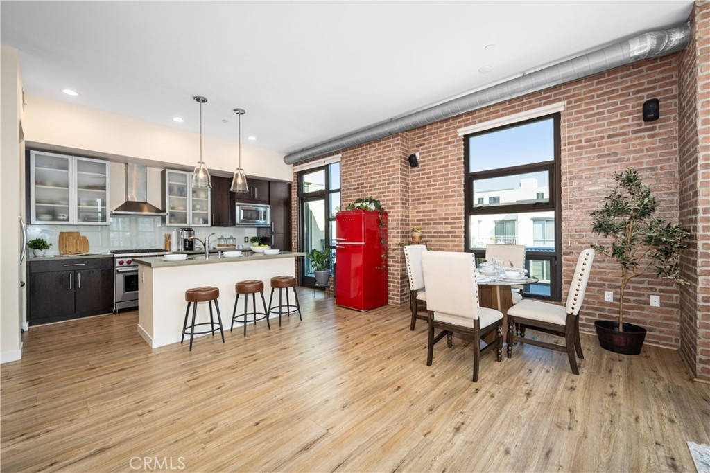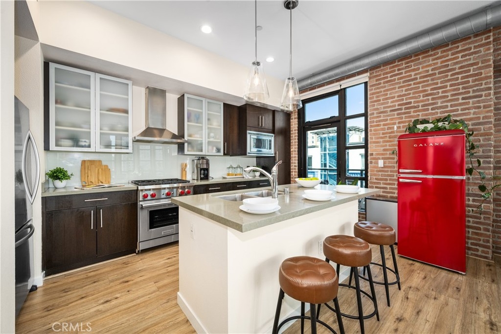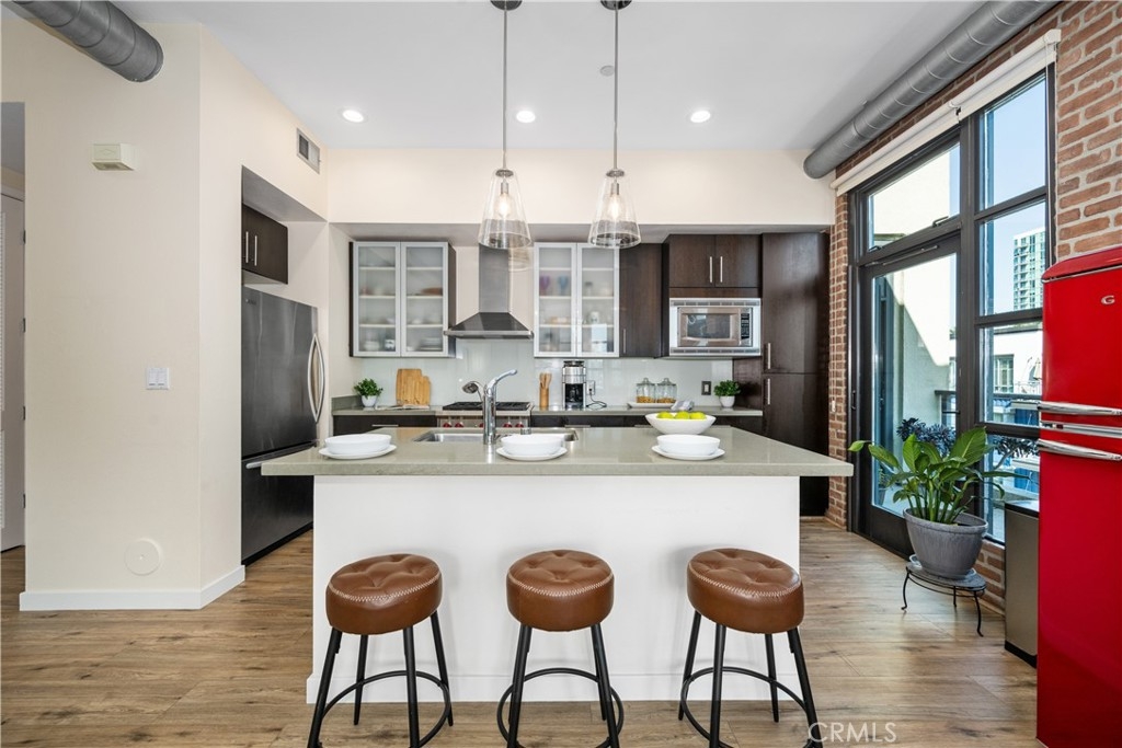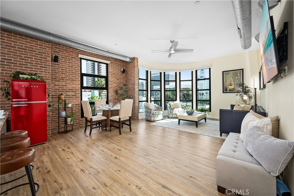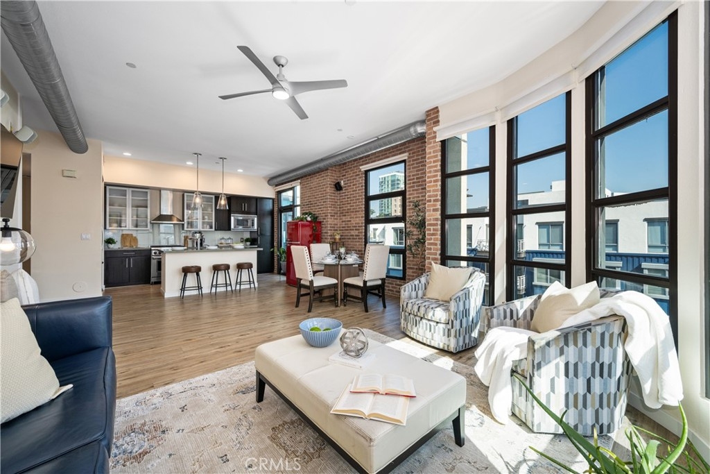 Downtown Luxury Meets Elevated Living. This is not just a condo; it's a statement. This top-floor, corner Penthouse offers 1,449sqft of sophisticated luxury, perfectly blending New York style w/Southern California charm. Located in the heart of vibrant downtown Long Beach, this rare residence invites you to experience a lifestyle of unique elegance & convenience. Where design meets functionality from the moment you step inside, you’ll be greeted by soaring high ceilings & an abundance of natural light pouring through expansive floor-to-ceiling windows. The striking exposed brick walls create a bold statement, while sleek, modern finishes bring a fresh, urban chic vibe. The updated flooring flows effortlessly throughout the space, guiding you to the heart of the home: a chef-inspired kitchen. Featuring a sprawling island w/barstool seating, ideal for entertaining. Including a professional-grade Wolf stove, promises a special cooking experience. A balcony w/direct access offers wonderful southeast-facing views of the Promenade, dog park, city skyline, & iconic Ocean Blvd, perfect for relaxing or entertaining. The oversized primary bedroom offers a serene retreat, complete w/balcony access. A custom-designed walk-in closet provides ample storage, while the spa-like primary bath is an indulgent escape. Featuring a deep soaking tub, separate shower, dual vanities, & elegant finishes, make for the perfect place to unwind & recharge. Unit #521 places you at the epicenter of everything Long Beach has to offer. From diverse dining experiences & trendy boutiques to vibrant nightlife & iconic attractions like the beach, Shoreline Village, the Pike, the Queen Mary & much more— everything is just moments away. Leave your car behind in one of your two assigned, gated, side-by-side underground parking spaces & embrace the walkability of this coveted address & dynamic lifestyle of downtown. With convenient access to major transportation, including freeways, LB Airport, your connectivity is effortless no matter where your day takes you. This pet-friendly building offers a wide range of exceptional amenities to elevate your living experience, including: A modern club room w/a full kitchen, pool table, & media center. An outdoor social patio bar & courtyard lounge w/a fireplace. A state-of-the-art gym & yoga room. Guest parking & electric car charging stations. A spacious, separate storage cage & shared bike room. Don’t miss the chance to own this exceptional Long Beach gem.