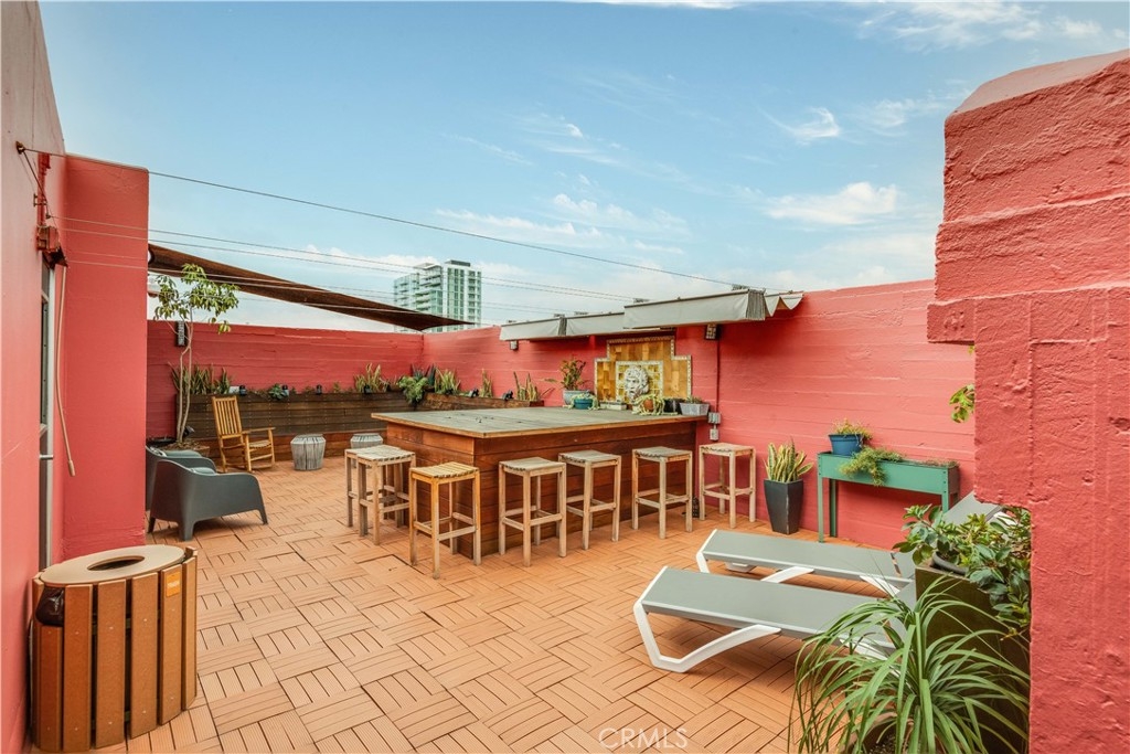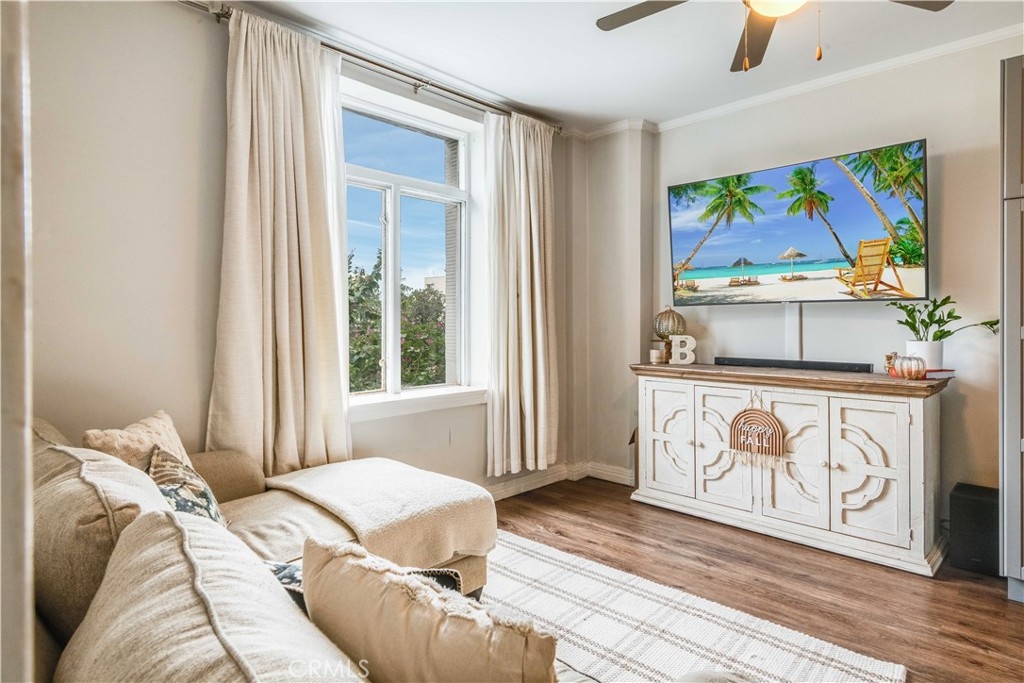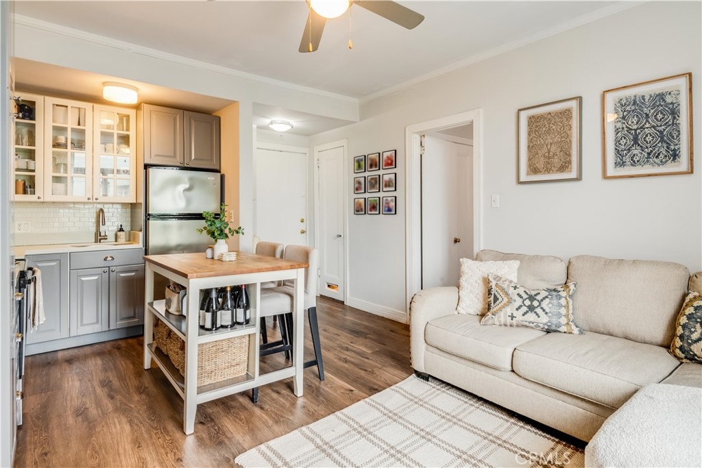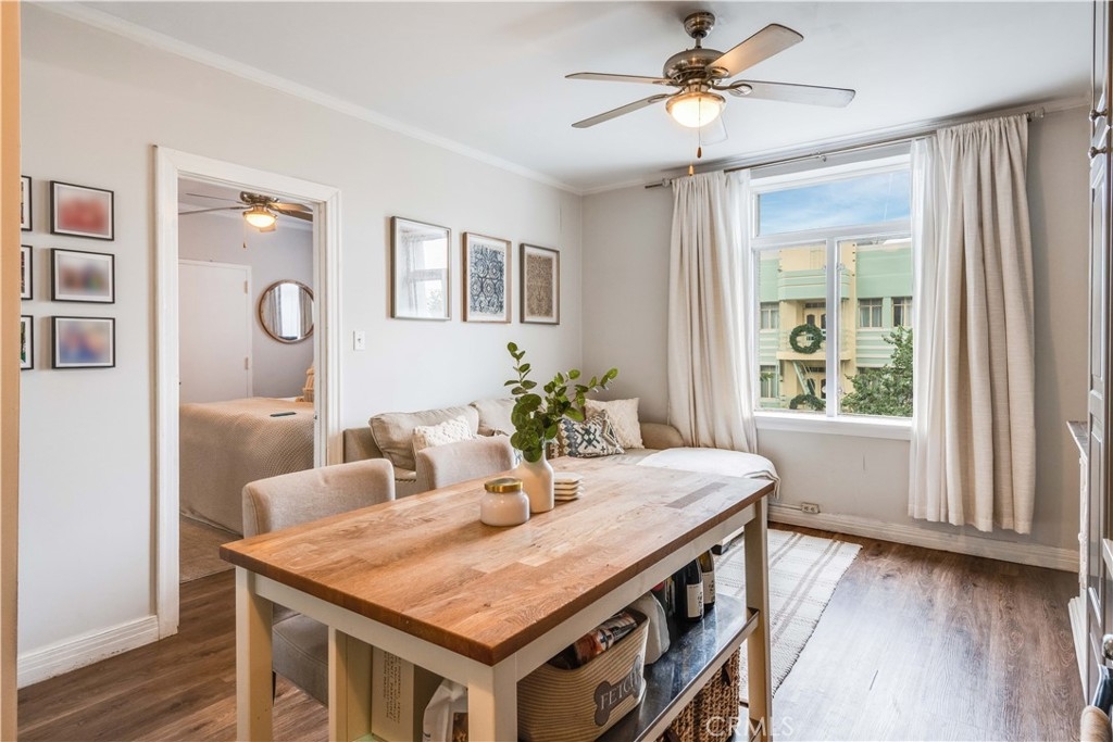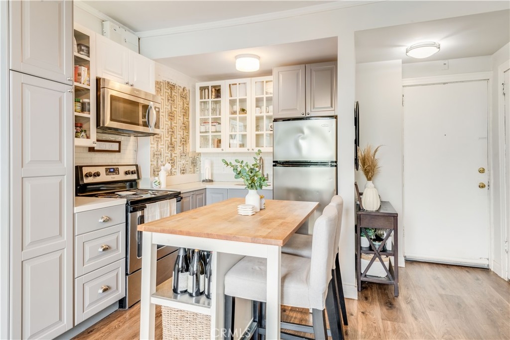 Location! Location! Location! Must see this beautiful New York style condo located in the iconic and historic Lafayette building in the East Village Arts District of Downtown Long Beach, just a short walk to the beach and surrounded by shops, restaurants, grocery, and all the amenities you need. The building’s grand art deco style greets you from the sidewalk and upon the moment you walk into the elegantly remodeled main lobby on Linden Ave, complete with concierge and secure elevators - to the time you enter your very own designer unit. The concierge can help with any building needs, neighborhood recommendations, or will safely accept any packages for you. The pet friendly building boasts two secure entrances for your convenience. This unique and remodeled one bedroom unit comes with 2 full bathrooms, both with original vintage tile and tubs. Spacious bedroom full of natural light with walk-in closet and additional spacious custom built-in linen closet. Lots of natural light from the tall windows and ceiling fans to provide nice cool air. Custom kitchen cabinets with luxury antimicrobial Silestone quartz countertops and a butcher block island. Kitchen is outfitted with all appliances and built-in microwave. Beautiful luxury vinyl wood flooring and original moldings throughout. This charming unit is perfectly space planned for maximum use of space. Numerous enjoyable indoor and outdoor opportunities with common areas throughout each of the connected buildings. Whether you want to cozy up and read a book in one of the charming seating nooks or people watch in one of the larger common areas. These areas include a large library with copper fireplace, large gym, large recreational game room, outdoor patio area with BBQ’s, rooftop seating, laundry rooms on each floor, stunning roof-top solarium with breathtaking panoramic views and more! Discover all the opportunities the historic buildings offer. Included with your very reasonable HOA dues (one of the lowest downtown) are water, trash, on-site management and much more. Come live the luxury of the 1920s in this iconic, historical landmark. Walking distance to the Marina, ocean, The Pike, restaurants, Performing Arts Center, Convention Center, Arts District, Shoreline Village, pier, Aquarium of the Pacific, grocery stores, public transportation and so much more. The perfect urban living opportunity!