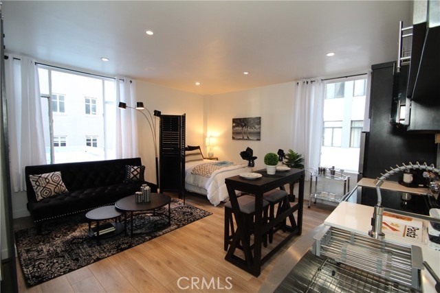 Selling a Lifestyle - Here is an Amazing opportunity to own an iconic piece of history and live in the famous Lafayette building in one of the nicest areas of Downtown LB near the beach! Designed by renowned art deco architects Arthur & Cecil Schilling, built in 1929 as a hotel, this is considered one of the finest examples of art deco architecture around. From the moment you enter the lobby, you will feel as though you have taken a step back through time. This is a beautifully remodeled End unit studio. Only one shared wall. Two large windows allow for tons of natural light. Custom built kitchen cabinets. Quartz countertops. Stainless steel appliances. Built-in microwave. New water-resistant wood laminate flooring. Scraped ceilings. Recessed lights w/dimmer control. Full remodeled bathroom. Located near the elevator & stairs. Common areas include; a massive fitness center (you'll want to cancel your gym membership)! Multiple meeting/lounging areas. Library w/ huge copper fireplace (a must see)! Large rooftop deck & solarium with awesome views of the city and ocean, large billiard room complete w/pool table, shuffleboard etc. Side patio area with BBQ's. There's even a dog wash area! Tech-savvy onsite laundry room. Low HOA dues only $147 a month pays water, sewer, insurance, maintenance, onsite management. Declared a historic landmark by the City of LB in 1986. Living at the Lafayette is a walk-through time from the elegance of a bygone era to todays modern amenities. The residents share pride in this historic landmark & the vibrant East Village neighborhood of specialty restaurants, coffee shops, cafes, art galleries & nightlife and farmers market right out your front door. Vons grocery store is less than 1 block away. This would make a perfect weekend beach retreat or a part-time residence for someone working in downtown LB. Building is FHA & VA Approved! Hurry, this wont last!