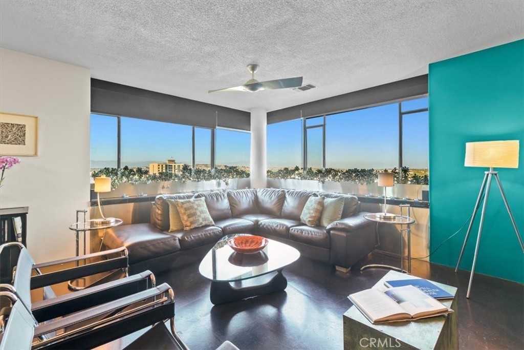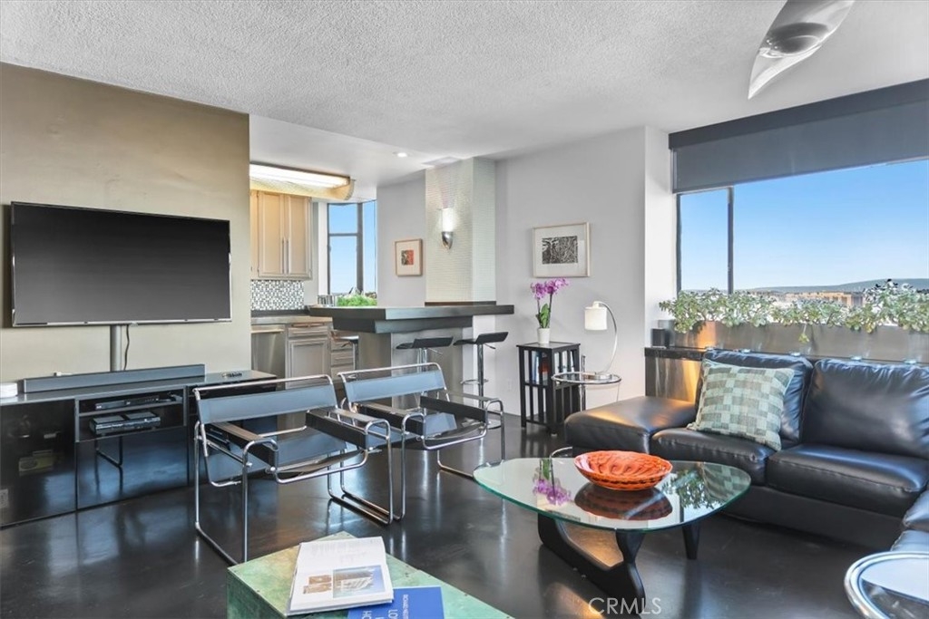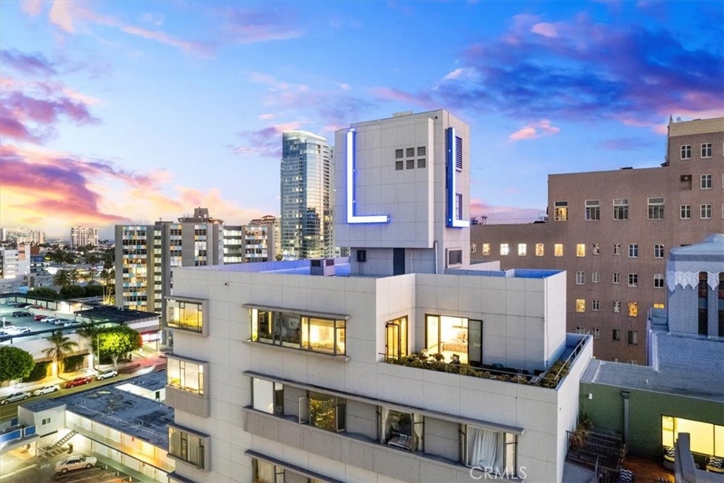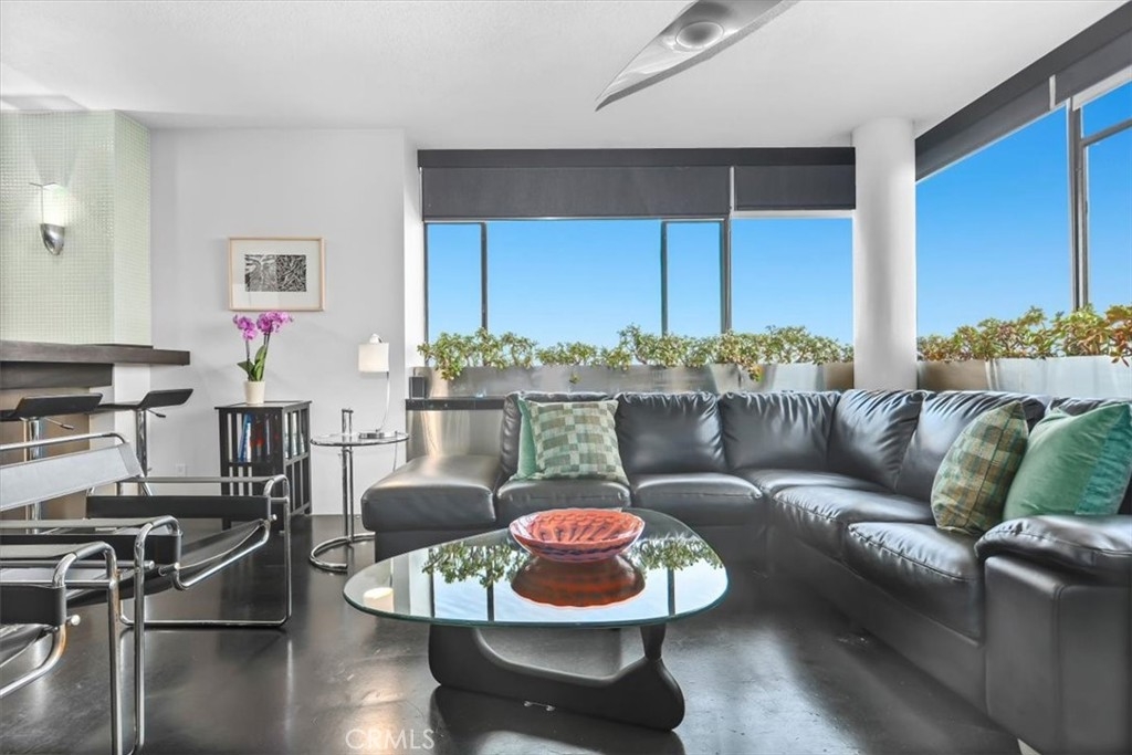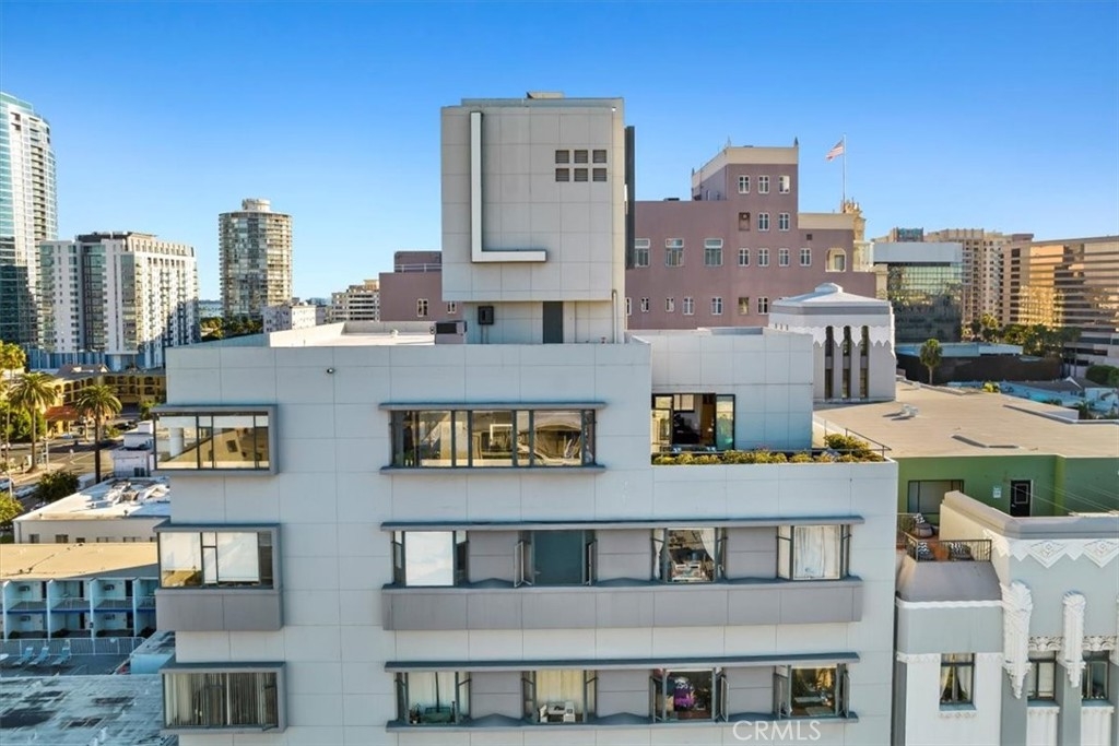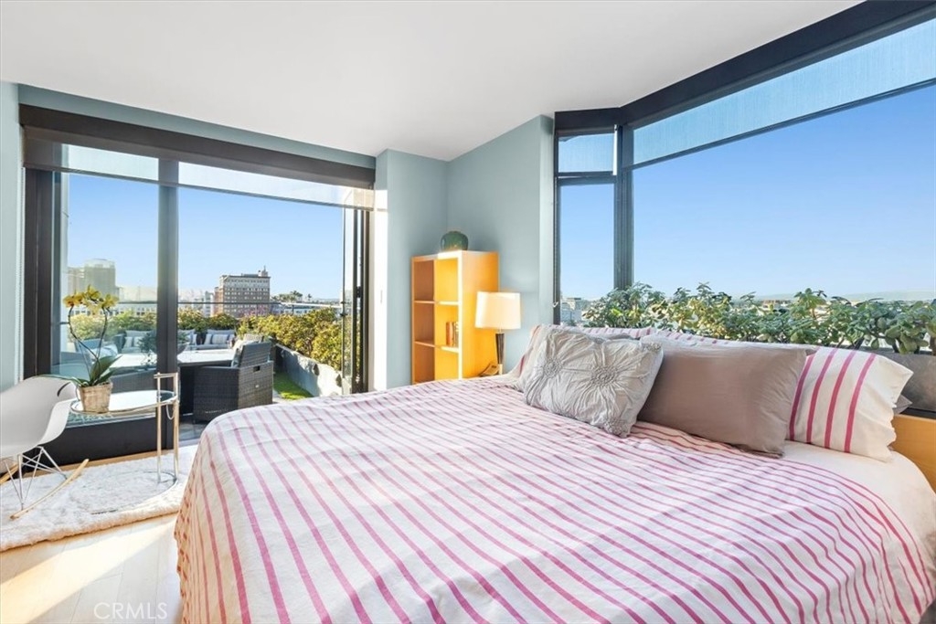 Spectacular views that stretch across 180 degrees and beyond in this two bedroom, two bath corner Penthouse condominium with over 700 square feet of expansive private outdoor spaces! Enter via keyed elevator access to the private lobby, tiled in polished black granite and contemporary French doors. As you walk in the front door you are greeted by wall-to-wall bay windows adorned with custom steel planter boxes. The living space sits conveniently off the open concept galley kitchen which has been remodeled with stainless countertops, stainless steel appliances, mosaic tile backsplash, and perfectly sized island/bar. From the kitchen, you walk down the extra-wide gallery hall with custom shelving and continued black concrete floors. The spacious main bedroom features American maple engineered hardwood flooring, a bay window tiled in polished black granite, a custom sized stainless steel planter box, and custom-fit dual white/charcoal blackout shades. Triple-glazed windows provide extra sound isolation. Three-panel extra tall French doors open to a spacious private terrace. Complete with a walk-in closet and stacked washer/dryer. The main bathroom features a 180 degree panoramic view to the north, with ceiling to countertop windows bringing in tons of natural light, a custom pebble shower wall, and planter boxes. The American maple engineered hardwood flooring extends into the second bedroom along with multi-function recessed LED lighting, custom dimmers, mirrored/frosted glass closet doors, built-in kitchenette or multi-function storage, custom French doors open to terrace, and en suite bathroom. Both bedroom doors open onto an unparalleled spacious private terrace providing ample space for both outdoor dining and lounging retreat. Custom stainless steel planter skirting, hose bib and drip watering system, a grid patio tile system edged with synthetic turf completes the space. A bonus patio area behind the second bedroom provides extra space for a range of uses from fitness to utility. Amenities include hot and cold water faucets, drain pipe, electrical outlets and Ring smart security light/cam with mobile app access. Two parking spaces are available with the unit! Located in the fabulous East Village Arts District surrounded by shops, restaurants, bars, hotels, and blocks from the ocean!