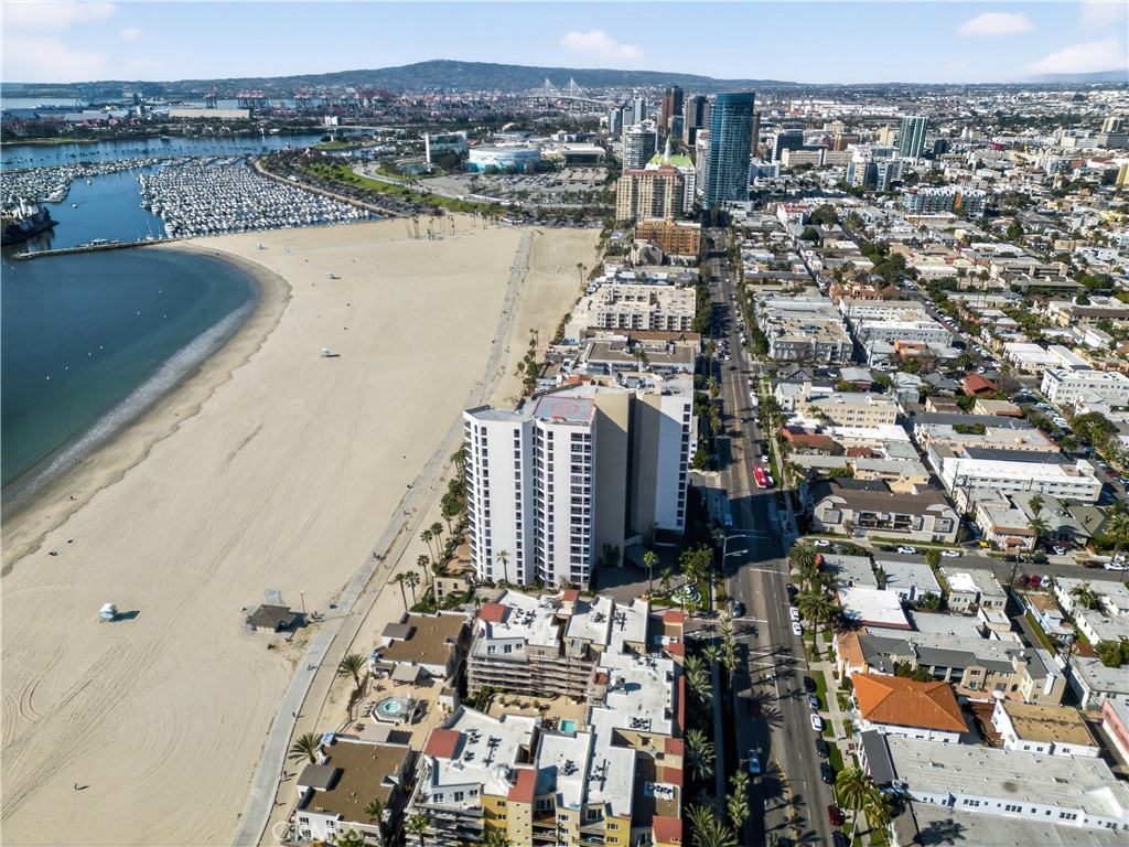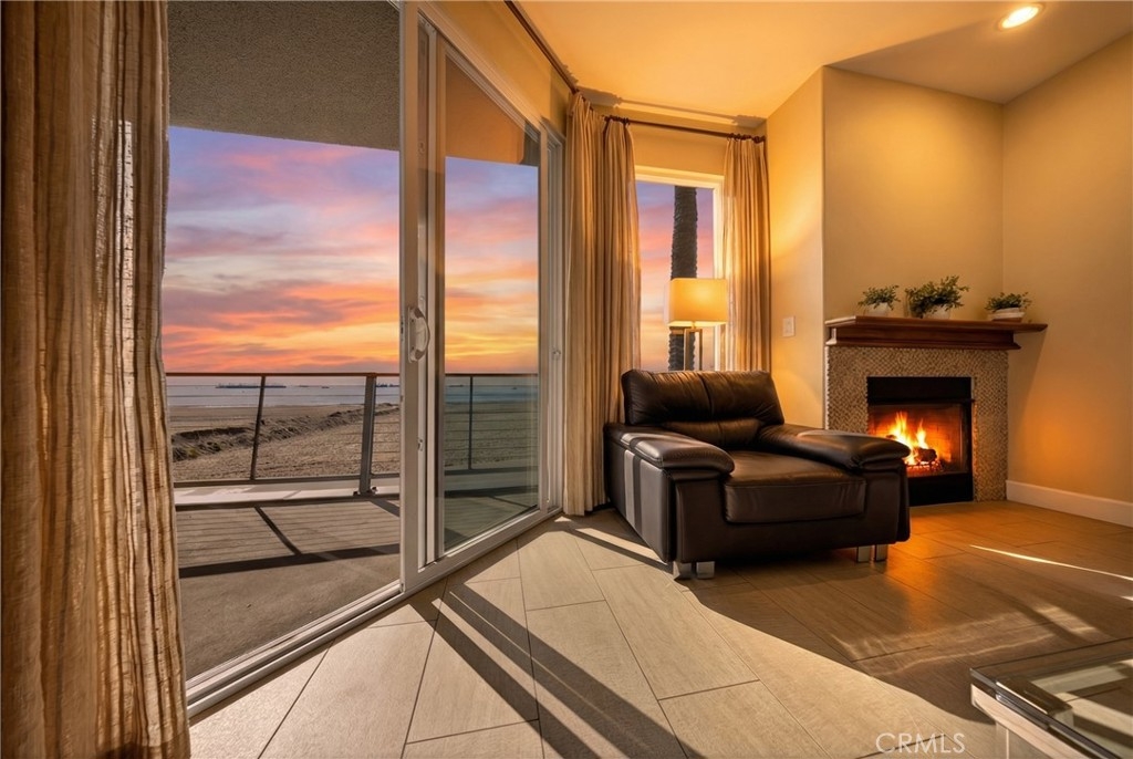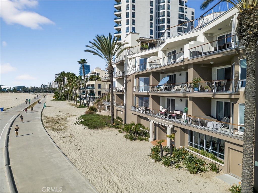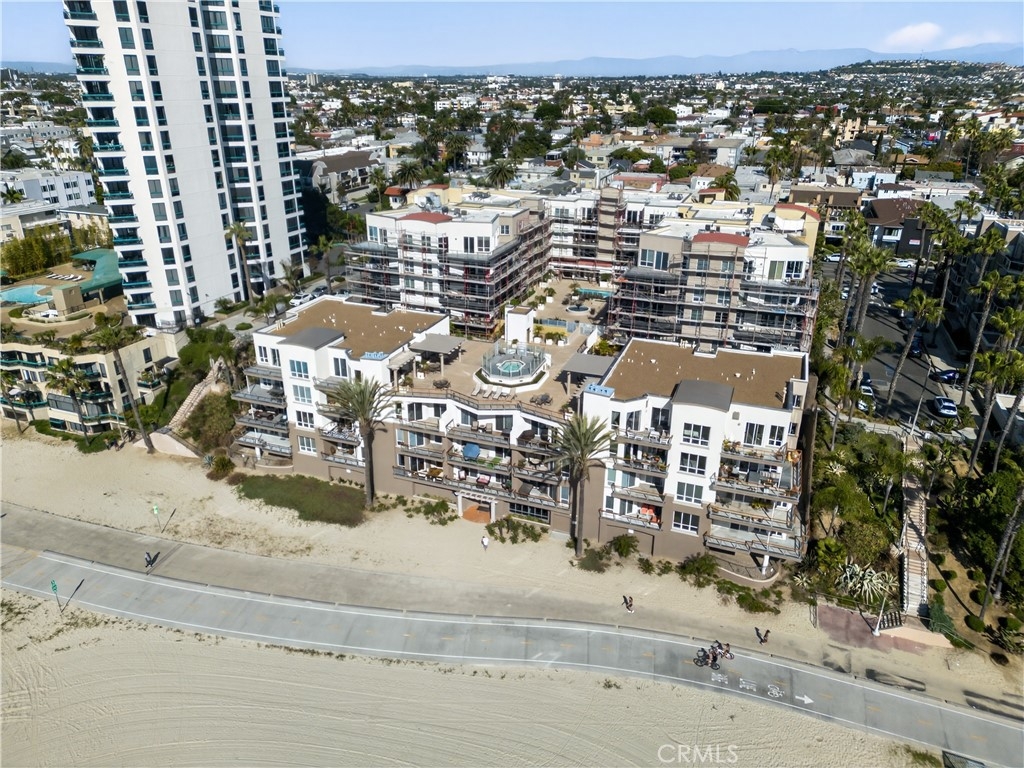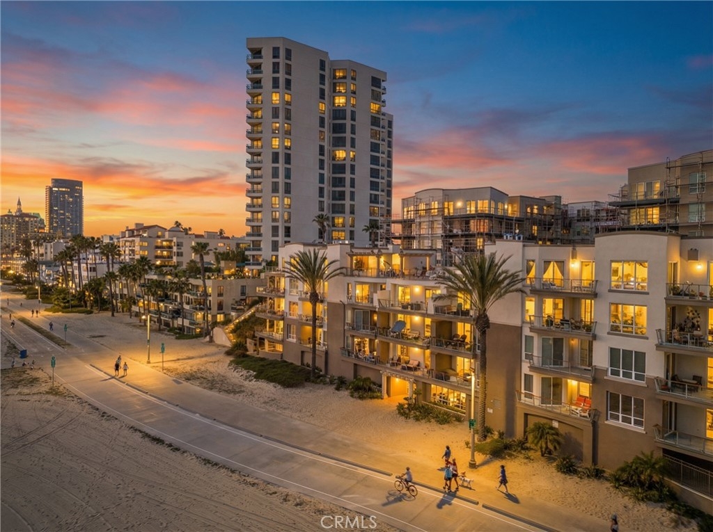 Exceptional direct-on-the-sand residence offering unobstructed ocean and coastline views and an elevated coastal lifestyle. Contemporary tile flooring flows throughout the main living areas, complemented by clean architectural lines, recessed lighting, and refined finishes. The guest bedroom and dedicated office feature custom window treatments, modern ceiling fans, and built-in cabinetry, including a custom workspace ideal for today’s work-from-home needs. The guest bath showcases custom tile flooring extending into the shower, classic subway tile, refined fixtures, and a built-in niche. Shaker-style custom cabinetry is featured throughout the home. The kitchen offers stainless steel appliances, a five-burner stove, farmhouse-style stainless sink, and custom tile backsplash—ideal for everyday living and entertaining. The living room is highlighted by three floor-to-ceiling windows framing breathtaking ocean views. The primary suite offers sweeping Pacific Ocean views, plush low-pile carpet, custom lighting, a spa-inspired bath with walk-in shower, bench, niche, customized walk-in closet, and additional built-in storage. Residents enjoy resort-style amenities including a rooftop pool, jacuzzi, BBQ area, fireplace, and panoramic sunset views, along with a community room for private events. Building amenities include a full-time Front Desk Manager during business hours, a daytime security committee, and an on-site security guard from 11:00 PM to 7:00 AM.