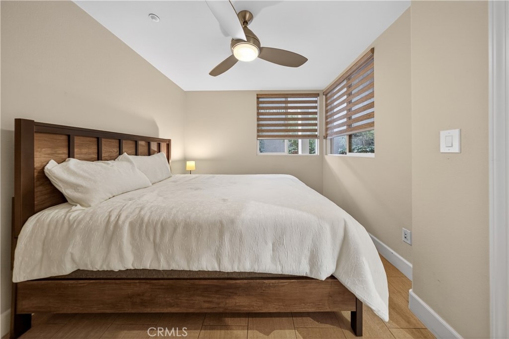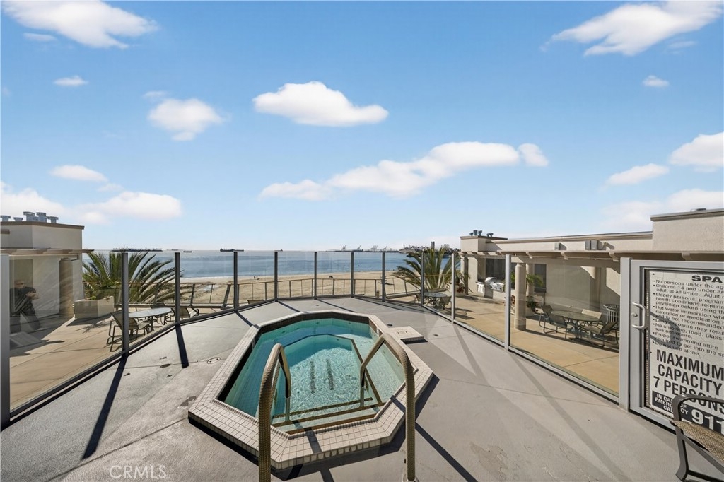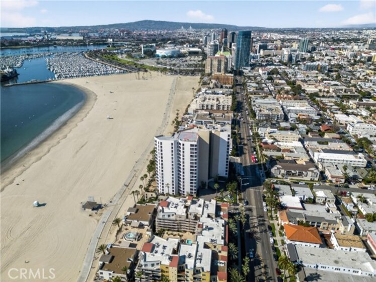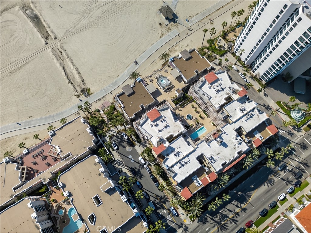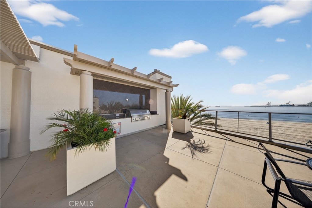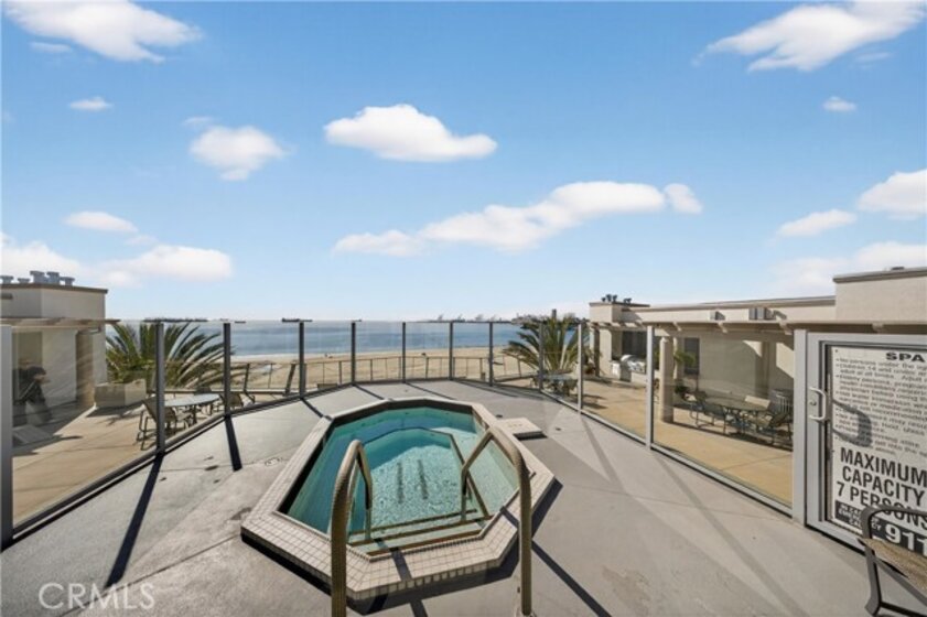 Exceptional direct-on-the-sand residence offering unobstructed ocean and coastline views and an elevated coastal lifestyle. Contemporary tile flooring flows throughout the main living areas, complemented by clean architectural lines, recessed lighting, and refined finishes. The guest bedroom and dedicated office feature custom window treatments, modern ceiling fans, and built-in cabinetry, including a custom workspace ideal for today’s work-from-home needs. The guest bath showcases custom tile flooring extending into the shower, classic subway tile, refined fixtures, and a built-in niche. Shaker-style custom cabinetry is featured throughout the home. The kitchen offers stainless steel appliances, a five-burner stove, farmhouse-style stainless sink, and custom tile backsplash—ideal for everyday living and entertaining. The living room is highlighted by three floor-to-ceiling windows framing breathtaking ocean views. The primary suite offers sweeping Pacific Ocean views, plush low-pile carpet, custom lighting, a spa-inspired bath with walk-in shower, bench, niche, customized walk-in closet, and additional built-in storage. Residents enjoy resort-style amenities including a rooftop pool, jacuzzi, BBQ area, fireplace, and panoramic sunset views, along with a community room for private events. Building amenities include a full-time Front Desk Manager during business hours, a daytime security committee, and an on-site security guard from 11:00 PM to 7:00 AM.