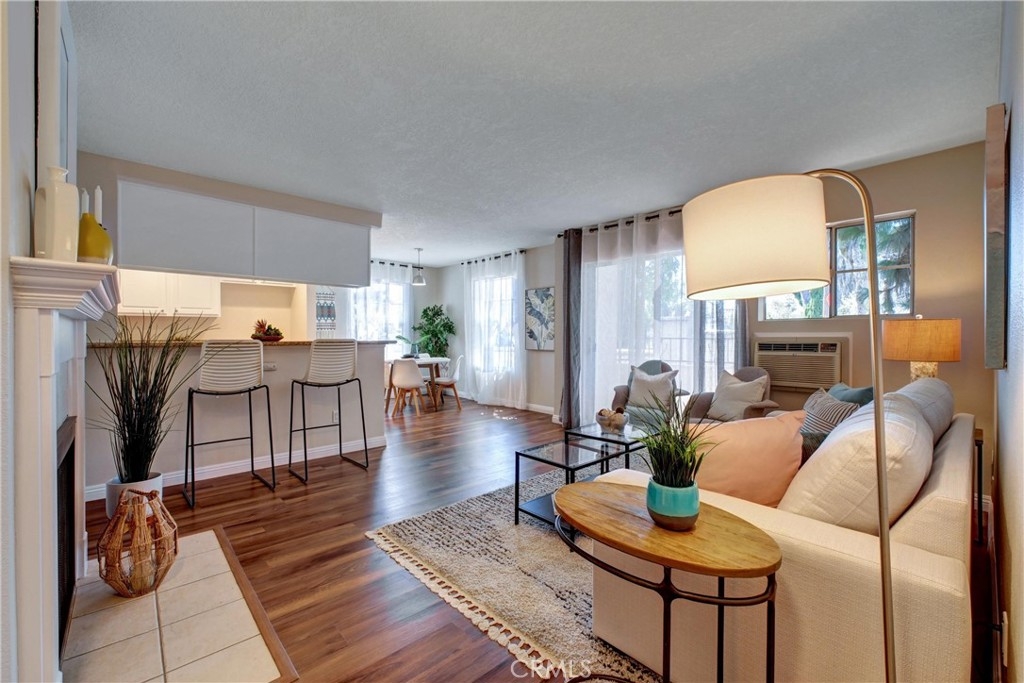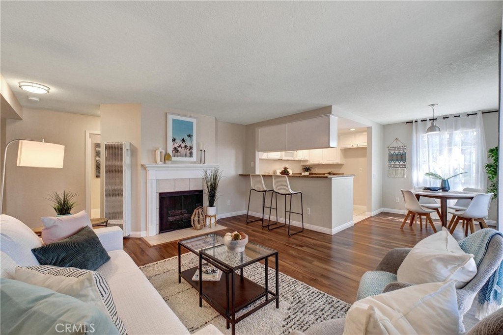Welcome to this charming 2-bed, 2-bath condo nestled in the highly sought-after Park Estates neighborhood of Long Beach. Bathed in natural light, this inviting home boasts an open layout where the kitchen, dining area, and living room seamlessly flow together. The cozy living room, complete with a fireplace, extends to an attached patio, perfect for relaxing or entertaining. The kitchen features granite countertops, plenty of cupboard space, and modern appliances. Both bedrooms are generously sized, with the primary bedroom featuring an ensuite bathroom for added privacy. The condo is equipped with modern conveniences, including a wall unit AC, updated light fixtures, fresh paint throughout, and an in-unit laundry area, creating a comfortable and inviting living environment. Located in a quiet, controlled-access community, this condo comes with two tandem parking spots in the subterranean garage. The prime location puts you just minutes from the beach, Circle Center West in the Traffic Circle, with easy access to local dining, and shopping. This home offers the perfect blend of comfort, convenience, and location.