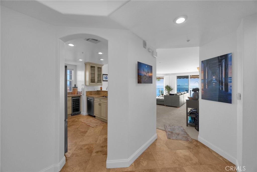 This ocean-facing corner residence offers unobstructed, panoramic views of the Pacific from nearly every living space. The open-concept layout is designed for both convenient everyday living and entertaining, with open flow between the living, dining, and kitchen areas, all framed by expansive windows and sliding glass doors that capture views of the ocean, Catalina Island, Thums Islands, the marina, the Queen Mary, and the coastline beyond. The kitchen is well appointed with granite countertops, stainless steel appliances, soft-close cabinetry and drawers, and generous storage. The primary suite features ocean views, an en-suite jet bathtub, and a spacious walk-in closet. Two additional bedrooms provide flexibility for guests, a home office, or secondary living space. Additional features include in-unit laundry, two rare side-by-side parking spaces, and dedicated storage. The building offers a full suite of resort-style amenities including a pool, spa, sun deck, fitness center, bike storage, and community room. Direct beach access puts the sand and shoreline just steps from your door. Ideally located near Long Beach’s best dining, shopping, waterfront attractions, and transportation corridors, this is a turnkey opportunity to own a true beachfront property with views, layout, and amenities that are increasingly hard to replicate.