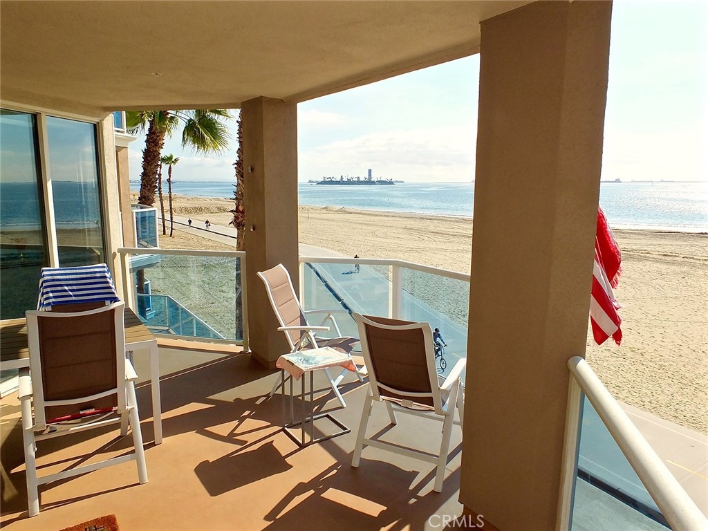 Amazing Ocean Panoramic Views! unit#201! Can see Catalina on a clear Day! Great Views from Second Floor! Not so low that you can"t see far,but not so high that Ocean looks too dark at night! Granite Counter Tops in Kitchen! Great Fireplace in Living Room. Just click the buttom. Every Cook's Dream- Gas Stove Top! Best Location in building. Only 4 units have this view! 3 Bedrooms. Master off by self with wake up to Ocean Views! So Fun!! Two Bathrooms. Jacuzzi Tub in Master Bath. People watch from balcony but you are on second Floor so no people walking up to say Hi! Large walk in closet in Master Bath. This unit has more windows for lots of light because it is an end unit. Concierge Service. Packages held at front desk Assistant at front desk from 9:30-4:30. Two Parking Places on same Floor as unit. Perfect location between downtown and Belmont Shore. Bike and walking Path. Possibility of some furnishings staying. Both Bathrooms have a Tub. Kitchen overlooks living room and Ocean Views. Washer and Dryer to stay. Large Storage Unit outside of Unit. Alo smaller One in another area. Also a bicycle area,if available. Newer Heating unit. Two Years old . No Air Conditioning. Beautiful Designed Tile Entry! Front Door And Sliding Door in Front Have Sliding Screens!! Building being repainted presently! One of Lowest dues in downtown buildings. Most are 1000. This unit is only 656.86. It covers Trash, water, maintenance, and assistant in Lobby. HURRY!
