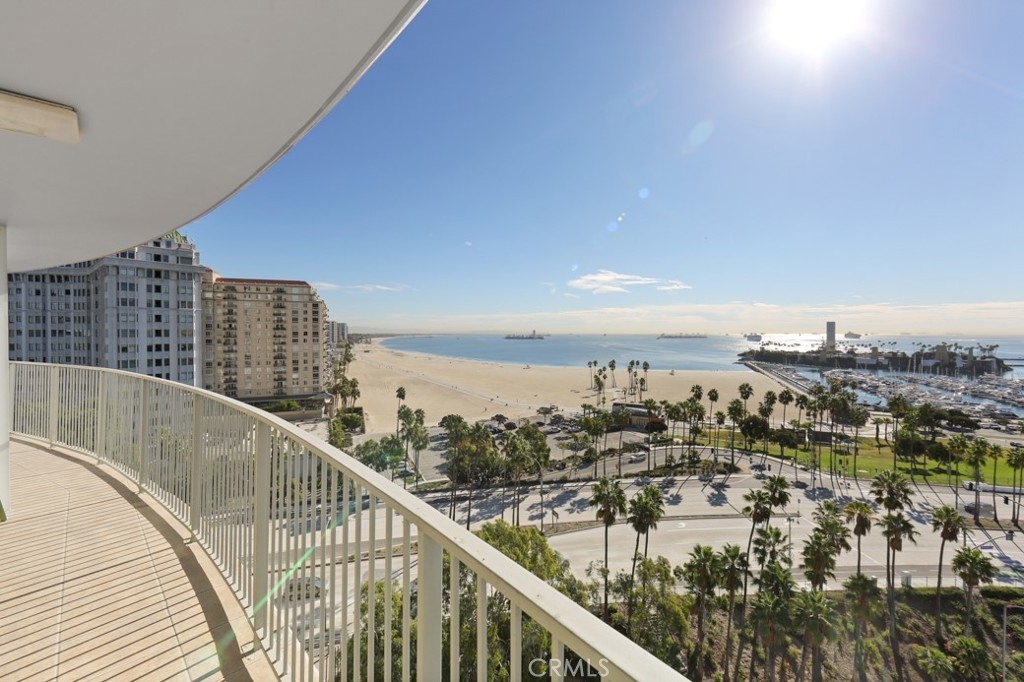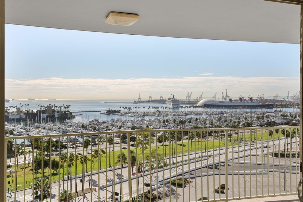 Iconic International Tower Condo unit #1606 with a beautiful views of the Ocean, Marina and coastline. Located on the 16th floor, with floor to ceiling windows and wrap around balcony boast amazing views from the living room and each bedroom of Catalina Island, Queensway Bay, the Queen Mary, Shoreline Village, Palos Verdes and more. Lovely tile flooring throughout, installed within the last 2 years. Built in appliances, stack washer and dryer included. Unit features 2 master bedrooms, one with a walk in shower and the other with a tub shower. Watch the Long Beach Grand Prix with friends and family from your balcony. Within walking distance of Restaurants, convention center, entertainment, shopping and Marina. Year round heated pool, spa. Enjoy the fitness center, meeting room, and 24 hour security. 2 parking spots 199 & 8 within the gated garage located beneath the units. No storage area.
