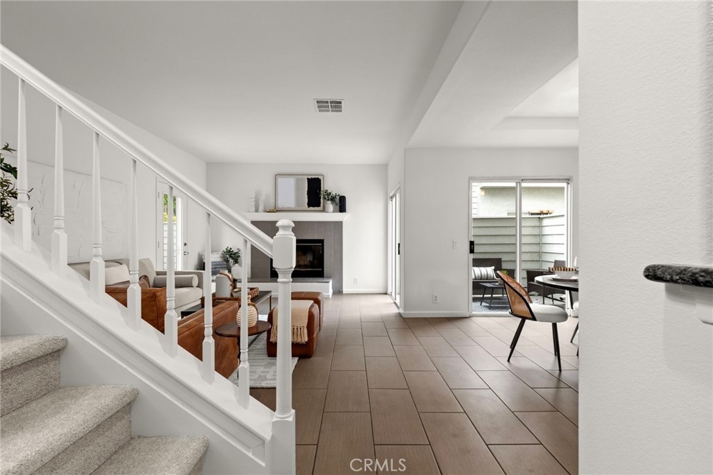 Lovely two-story condo with a fantastic layout and a HUGE amount of PRIVATE outdoor living space! Boasting over 1,300 sq. ft. (inside) and 400+ sq. ft. (outside), with three bedrooms, two and a half baths and two private patios, this unit feels more like a single-family home!! A pretty garden path through this small well-kept complex leads to the private rear corner entrance. High ceilings greet you and lots of windows throughout create an open airy feel and bring in light all day long. The remodeled kitchen has shaker style soft close cabinets, granite counters, lots of storage and counter space, and pendant lighting. The kitchen is open to the dining and living rooms creating an easy living flow. The dining area fits a large table and has a classic chandelier and tray ceiling. Sliding doors lead to the first patio - grab your coffee and enjoy! The living room, also a very good size, has a fireplace perfect for those cozy nights in. Outside a HUGE patio awaits – there is room here for an outdoor living room AND outdoor dining (and even more room after that!!). Also downstairs is a cute remodeled half bath, a separate laundry room (full size side-by-side!) and lots of extra storage. All the bedrooms are upstairs. The second-floor primary bedroom is quite large and has cathedral ceilings which give it an open airy feel and lots of windows which bring in natural light. The primary bathroom has been remodeled and has a floating sink, custom tile and large walk-in shower. The other two bedrooms are also very good sized, one with a walk-in closet. Additional highlights include a tankless water heater, central air and heat, recessed lighting, fresh paint and new carpet. There are two side-by-side parking spaces with super easy access to the home from the back stairs AND a private storage closet in the parking area. All that plus a fantastic Long Beach location just minutes from the beach, Cal State Long Beach, shopping, restaurants, nightlife, outdoor recreation, public transport and freeways. Hurry! You will not want to miss this one!