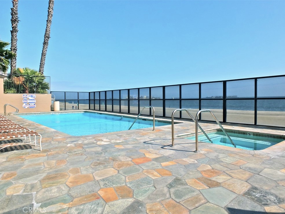 Captivating Ocean Views! Gaze at the ocean for hours from this upgraded oceanfront 15th floor condo! Work from home in your own piece of paradise or have an easy commute to Los Angeles and Orange County. This light filled home features floor to ceiling windows, laminate flooring, and central heat and air. Parking is an ease with a prime spot in the parking garage with storage cubbies. HOA fee includes high speed internet, wifi, cable TV, water, partial earthquake insurance, and 24/7 maintenance staff. Imagine sipping your favorite beverage from the sun deck after spending time in the jacuzzi or sauna. Feel gentle breezes in the heated saltwater pool that has an ocean view. Direct access to the beach and bike path, and the sunrises and sunsets are impeccable from the sandy beach or from your spacious living room. Reserve the oceanfront community room for larger gatherings and use the updated kitchen, pool table, ping pong table and gym at your convenience. Belmont Shore, Pine Street, Shoreline Village, Farmers Market, LB Museum of Art and Yoga on the Bluff are all nearby.