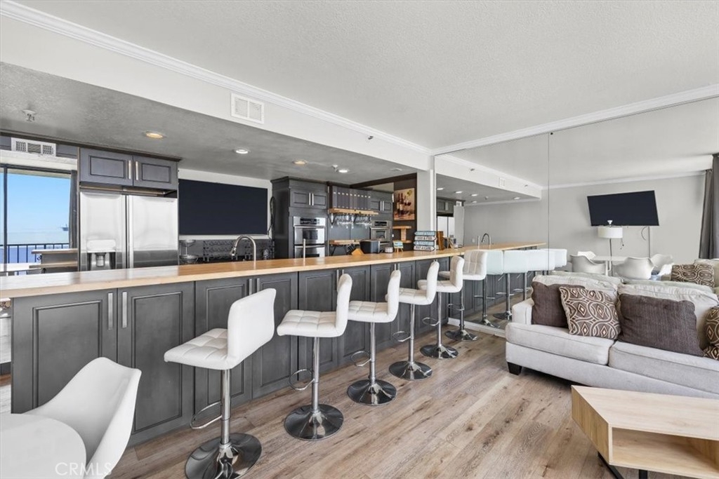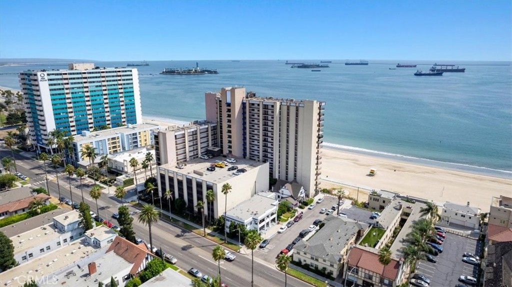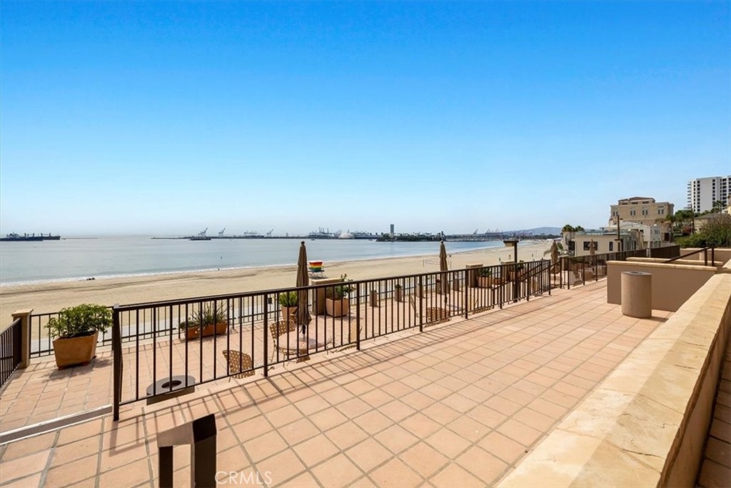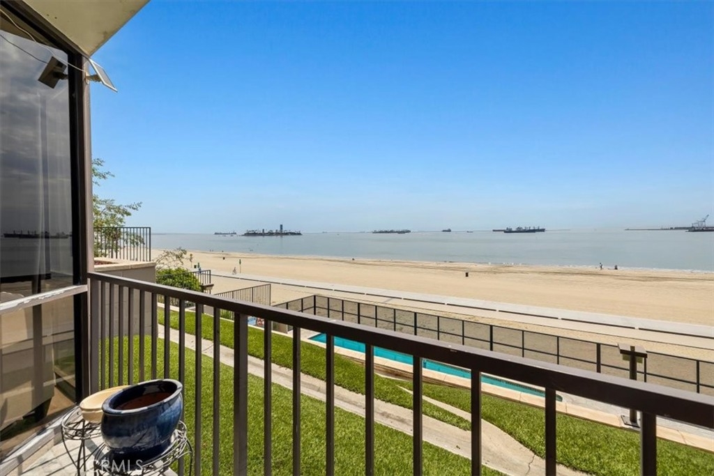 Are you ready to live the Ultimate Beach Life? Welcome to 1750 E. Ocean Blvd Unit #6, one of the largest 1 BR/1BATH units available at this direct ocean front complex with stunning panoramic ocean views! Bike paths and beach recreation are steps away thanks to its premier location right on the sand. Wake up each morning to ocean waves, sun-filled rooms and cool breezes. This 827 SQFT unit has newer laminate flooring throughout, floor to ceiling windows, central Heat and A/C, crown molding, recessed lighting and has been freshly painted. Both the kitchen and bathroom have been updated! The open concept kitchen/living space features a long countertop bar with 6 stools, s/s appliances, s/s farmhouse sink and 2 TVs! If you like to entertain or watch 2 games at the same time…you’re in luck! Prepare your meals while gazing at the blue water out of the floor to ceiling windows. The full bathroom, which you can access from the hallway or the bedroom, has been updated with gorgeous porcelain tiled walls. Additionally there are 2 linen closets, a spacious countertop, multiple shower heads and frameless shower doors. When you’re ready to wind down, the main bedroom located off the foyer is generous in size (fits king bed and dresser) and features mirror sliding closet doors and wall-mounted flatscreen TV. Stackable washer/dryer also included! The Queen Surf residents enjoy the heated pool, hot tub and sauna, a fitness room and recreation center with billiard table. The HOA also includes water, trash, insurance, FIOS cable TV and Internet and Earthquake Insurance! This prime location has a 180-degree unobstructed view of the Pacific Ocean and beautiful shoreline. Ideally located near many local spots for recreation, shopping & dining which include Belmont Shore, Downtown LB, Pine Ave & Pier, Shoreline Marina, Rosie’s Dog Beach, Bixby Park and the Aquarium of the Pacific. This unit comes with 1 gated parking spot with storage. Don’t miss the opportunity to live in this Ocean Oasis! All Furniture inside the unit is negotiable.