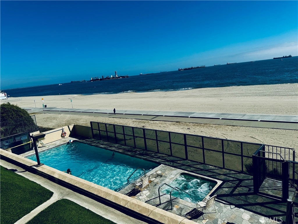 Live like you are on Vacation every day at the Beach! Enjoy the spectacular Ocean View with Direct Beach Access as well as City Light Views from the 8th floor. This Unit is Turnkey with a Remodelled Kitchen and Bathroom sporting Quartz Counters, New Cabinets and Stainless Appliances. The Kitchen offers a Breakfast Bar as well as a Seperate Eating Area, a Laundry Closet with Washer & Dryer Hookups, a Linen Closet & a Large Walk In Closet. You can enjoy the amazing Ocean View and Ocean Breezes from your Family Room or your Private Balcony. This Building is immaculately maintained and features a large party room with Full Kitchen, pool table, ping pong & Gym overlooking Ocean. The beautiful Resort style Pool & Spa overlooks the Ocean and you have Direct Beach Access! This complex is located close to downtown Long Beach, Belmont Shores, The Aquarium of the Pacific, the Queen Mary and tons of great Restaurants & Shops!