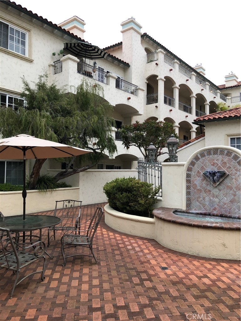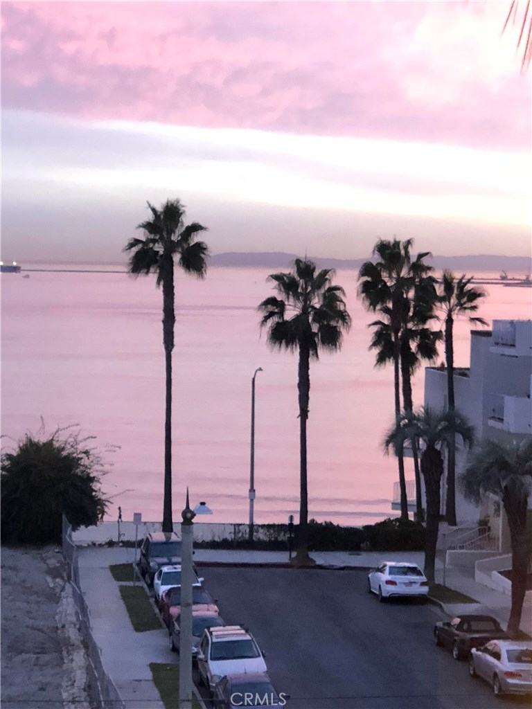 Ocean Views throughout this large Top Floor Mediterranean style villa in Alamitos Beach. This condominium has 2 bedrooms, 2 ½ bathrooms and is located close to the elevator. Open floor plan in the living, dining & kitchen areas is perfect for entertaining. Enjoy your morning coffee from one of the two ocean view balconies, one off the living room & one off the master bedroom. Kitchen updated with granite counter tops and stainless-steel appliances. New flooring throughout the home with one common wall. Design features include recessed lighting, columns, archways & vaulted ceilings. Central A/C and heat. Laundry room with sink includes energy efficient washer & dryer. Master bedroom has a vaulted ceiling with a large walk-in closet, sitting area that leads to the en suite large bathroom with over-sized jetted bathtub perfect for relaxing after a long day. A second bedroom has its own private en suite bathroom as well. Building amenities in this 28-unit building include a spa in the courtyard, community meeting room/clubhouse with kitchen, secured guest parking in addition to your personal 2 side by side parking spaces & storage cabinet. Pet friendly building. This community is across the street from the beach bike/walk path & neighbors Bixby Park. Close proximity to Belmont Shore, the Pike and downtown restaurants & nightlife. Shows like a model home and is ready for you to move in!
