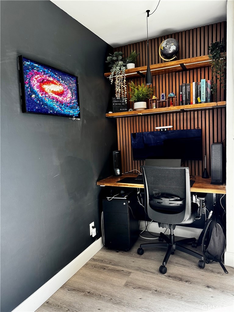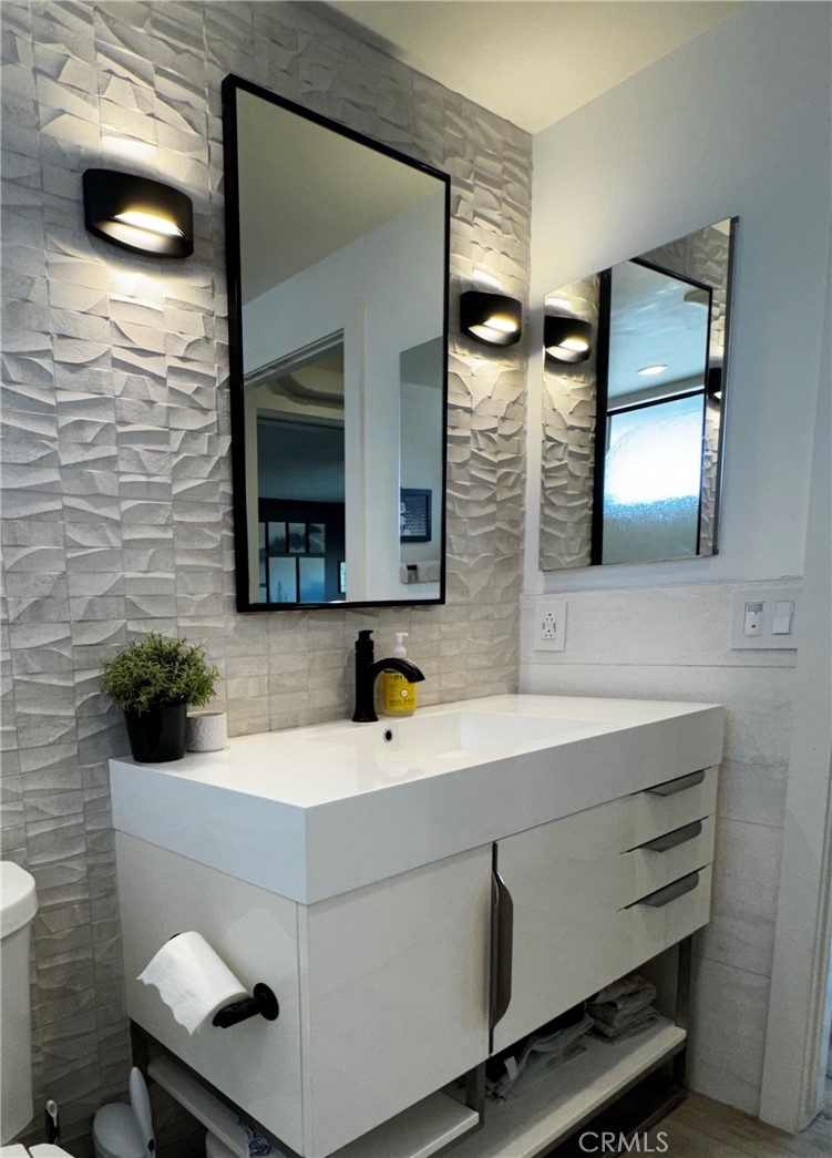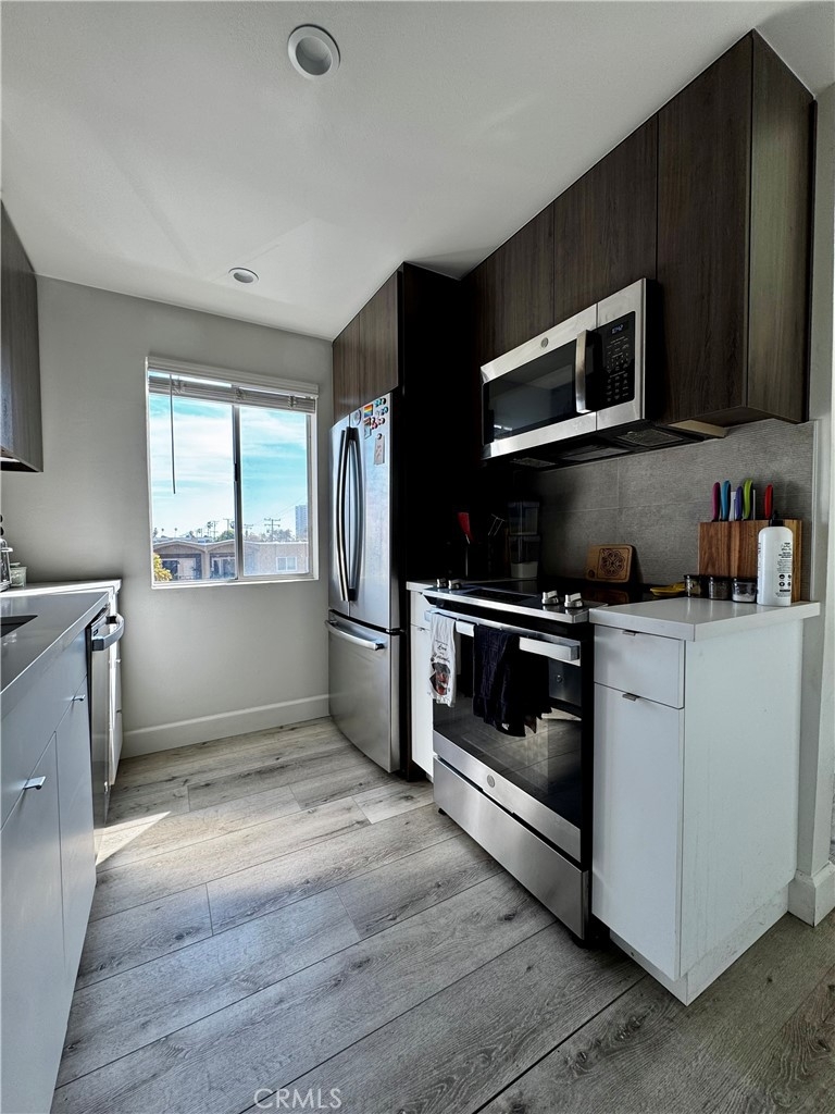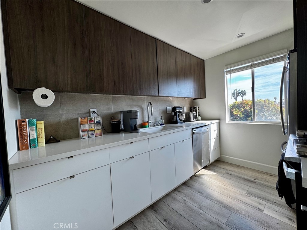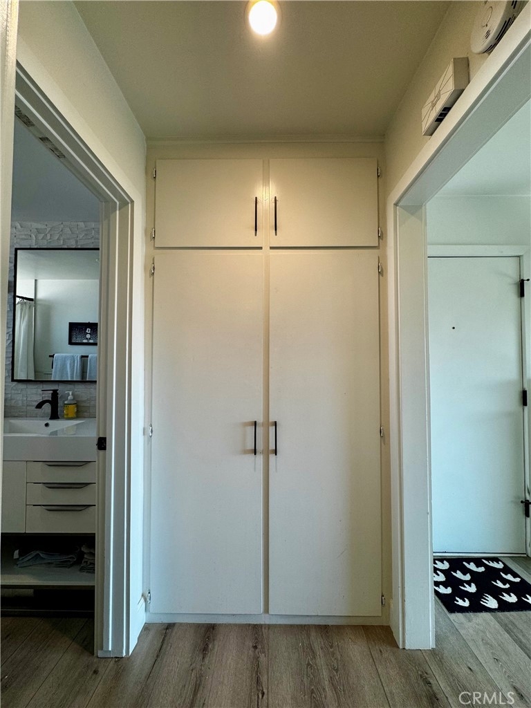 Located in the Bluff Park area, this condo is everything you are looking for. Located two blocks from the beach and one block from Bixby Park, this unit is a one bedroom one bath condo that has what not many condos in Long Beach have, an HVAC system! There is a large slider in the living room area that opens up to a Juliet balcony with a peek-a-boo view of the ocean. This unit features newer laminate floors throughout, recessed smart lighting and ceiling fans throughout, a kitchen that boasts quartz countertops on custom cabinets and backsplash, a bathroom with a walk-in shower with pebble tile flooring and beautiful tile to line the walls along with an accent tile wall behind the gorgeous vanity, and the large bedroom easily fits a king size bed with a large window to let in light and large beautiful closet doors. This unit is ready for you to move into! The unit comes with two parking spaces located in the garage which can only be accessed by remote. The building is home to a total of 12 units and has a laundry facility and elevator.