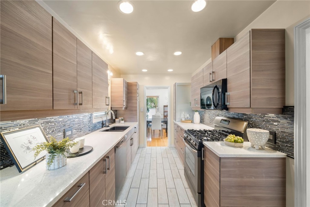 This beautiful 2 bedroom 2 bath condo on the edge of Bluff Heights is looking for its new owners! A first floor unit that provides easy access directly from inside the garage or right off your personal driveway. Step into the bright airy living room with high ceilings, gorgeous hardwood floors and lots of natural sunlight. The kitchen has been updated with soft close cabinets and tile floors. The 2 bedrooms are extra large with oversized closet space in each. You will find additional ample storage in the hallway closet and cabinetry. Just off the end of the hallway is a full bath that has just been remodeled with exquisite decorative marble tile floors. The second bathroom has a retro vibe and located off the primary bedroom with walk-in shower and Italian marble floors. The back door just off the kitchen creates a cross breeze and easy access to the lush landscaped courtyard. The garage is big enough for a large vehicle and all your recreational toys! This property is Turn Key with an amazing walking score. Just a few blocks to the ocean, Bixby Park farmers market, Yoga on the Bluff, dog park, and 4th street retro row!