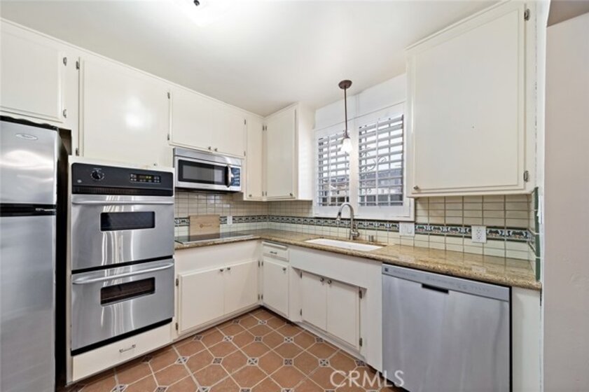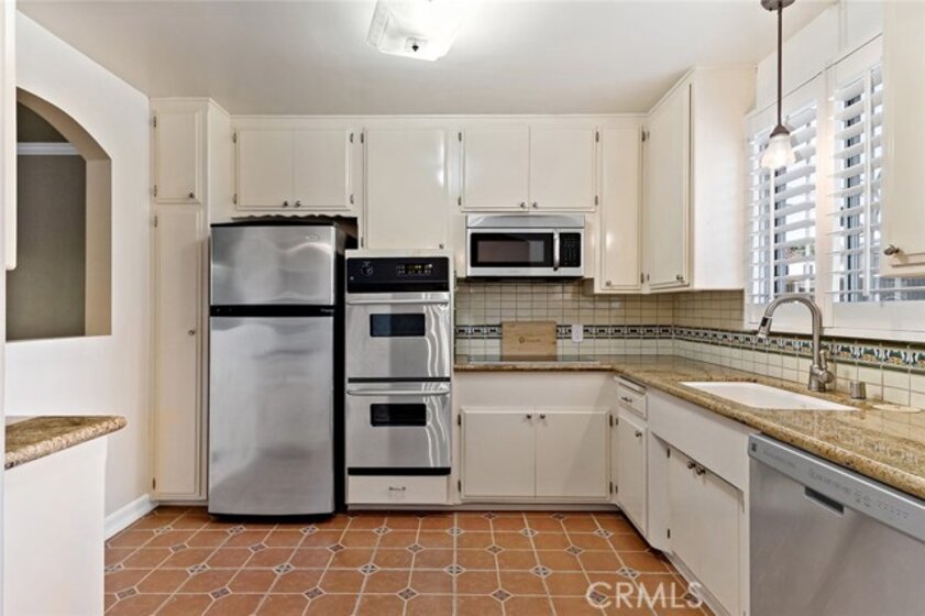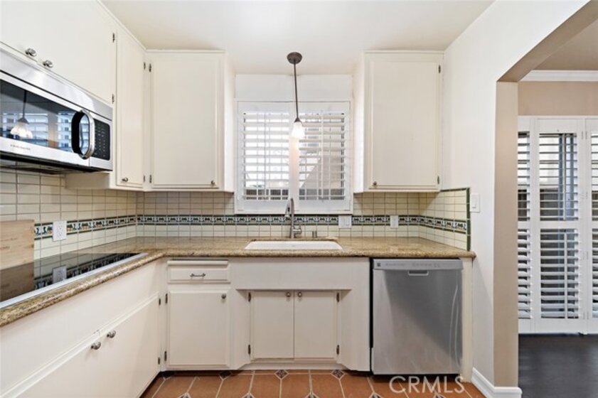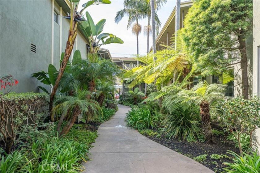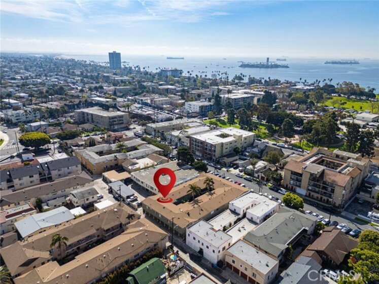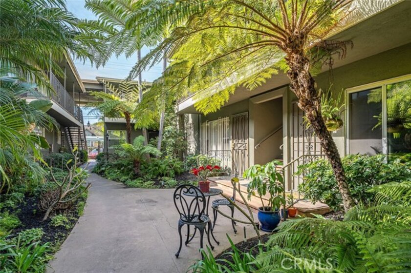 Live just three blocks from the beach in this charming 1-bedroom, 1-bathroom downstairs condo in a secure, gated building in Alamitos Beach. A peaceful courtyard with greenery, colorful flowers, and a fountain welcomes you home. Inside, original hardwood floors, plantation shutters, and an arched cutout window between the living room and kitchen add character and function. The kitchen features granite countertops, white cabinetry with brushed nickel hardware, and a tile backsplash with accent detailing. Saltillo tile floors complement the space, while stainless steel appliances and a gooseneck sprayer faucet provide modern convenience. The bedroom includes a walk-in closet with built-in organizers, and the bathroom retains its vintage charm with classic tile. A combo washer/dryer in the unit adds everyday ease, with additional community laundry available. Street parking is available on the one-way street, and a rentable parking lot is just a short walk away. With its character, updated features, and prime location just off the Broadway corridor and only three blocks from the beach, this condo offers a great opportunity for coastal living.