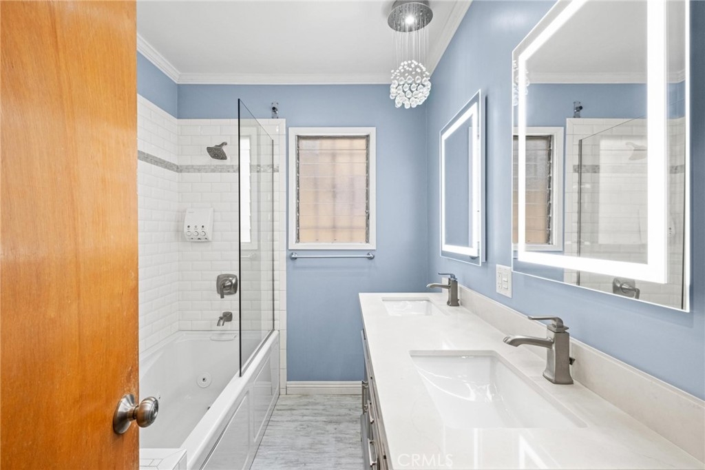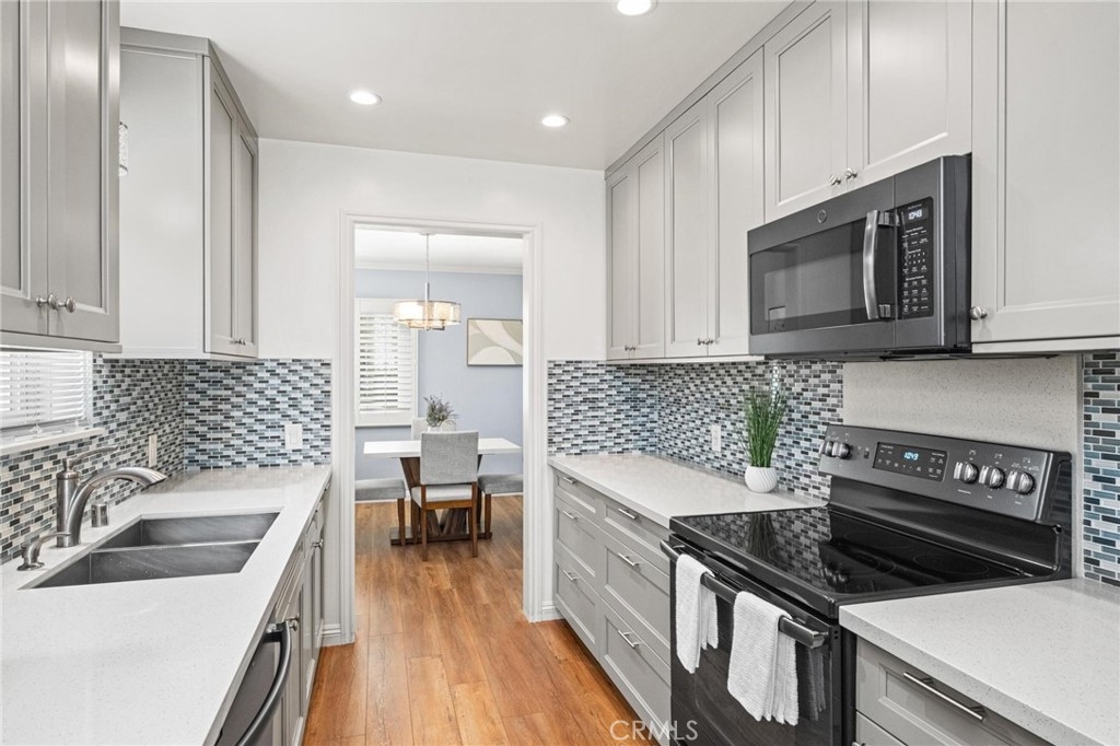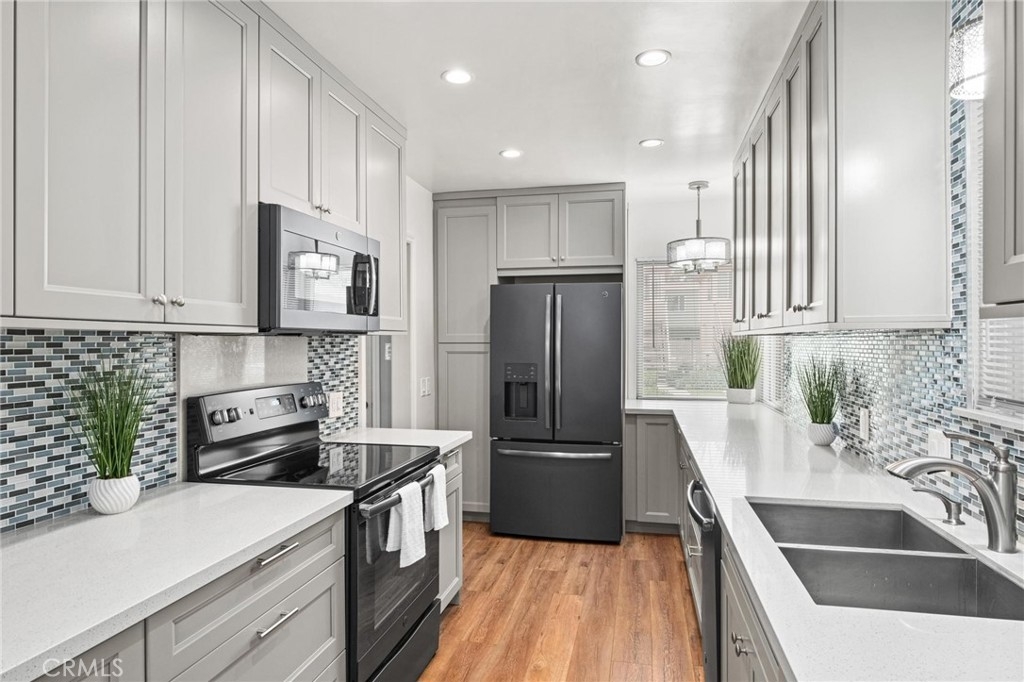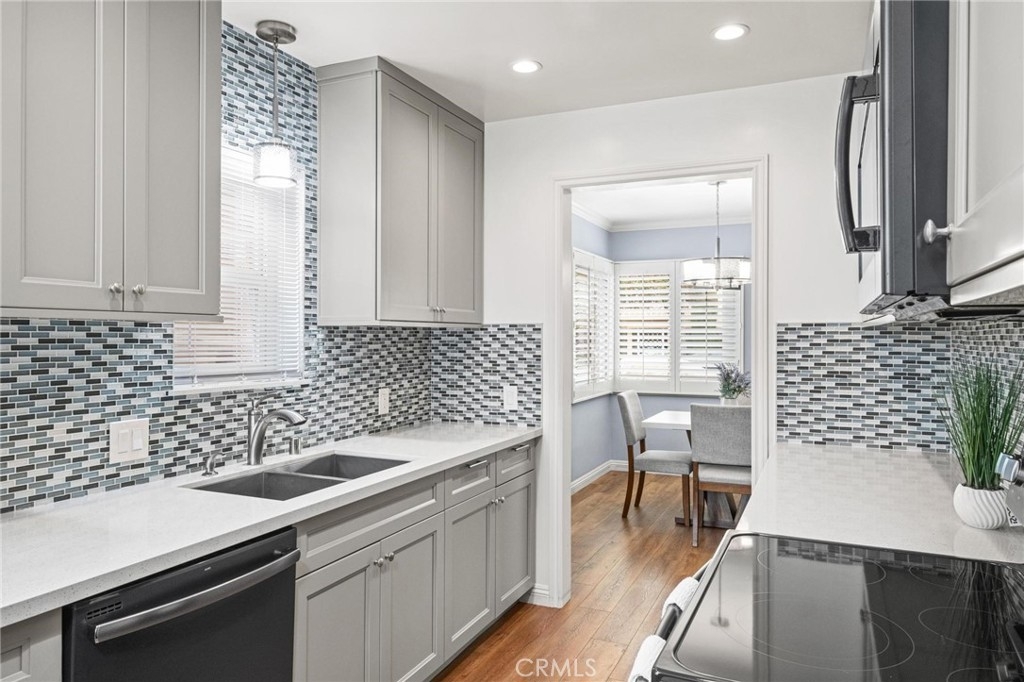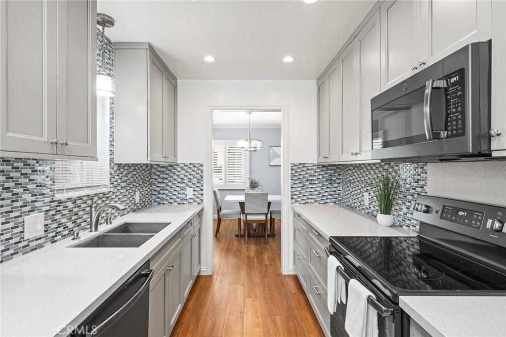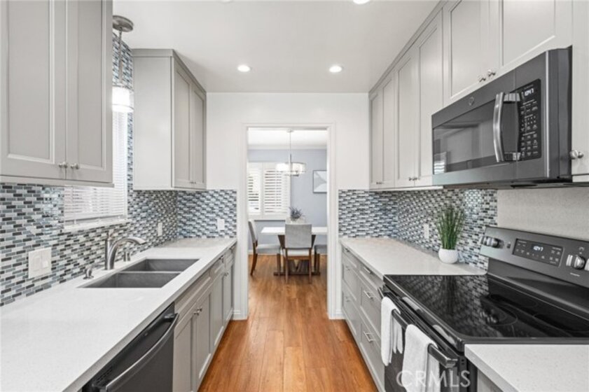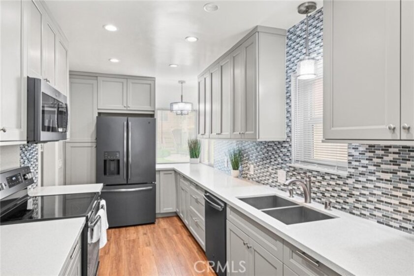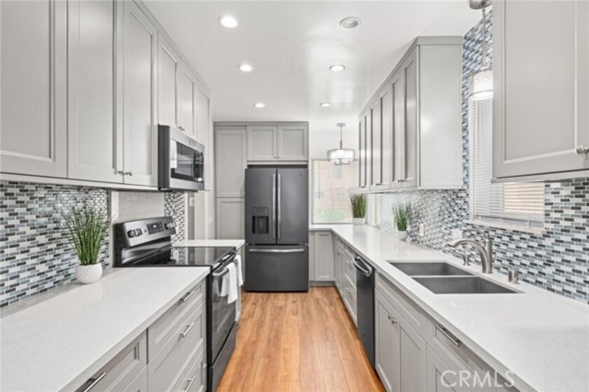 The Bixby Imperial Condominiums has a fantastic home for a new home owner. This quaint ten-unit complex is located in the Alamitos Beach neighborhood of Long Beach. Walking distance to Bixby Park and the Ocean. This convenient first floor condo has two spacious bedrooms, two full bathrooms, large and open living room leading to a completely remodeled kitchen with GE slate appliances. The kitchen has a mosaic tile backsplash, quartz countertops and shaker cabinets. Beautiful, engineered hardwood floors throughout the home, a remodeled bathroom has a spa/jet tub and shower with white subway tile. This home in particular is special because it has a street facing one car garage which has direct access into the home along with driveway parking behind the garage giving you a total of TWO parking spaces. Rare! This home has plenty of restaurants and coffee shops to choose from. A short walk to the popular Bluff Yoga classes at Bixby Park. Short drive to downtown Long Beach as well as fine dining and shopping on 2nd St in Belmont Shore.