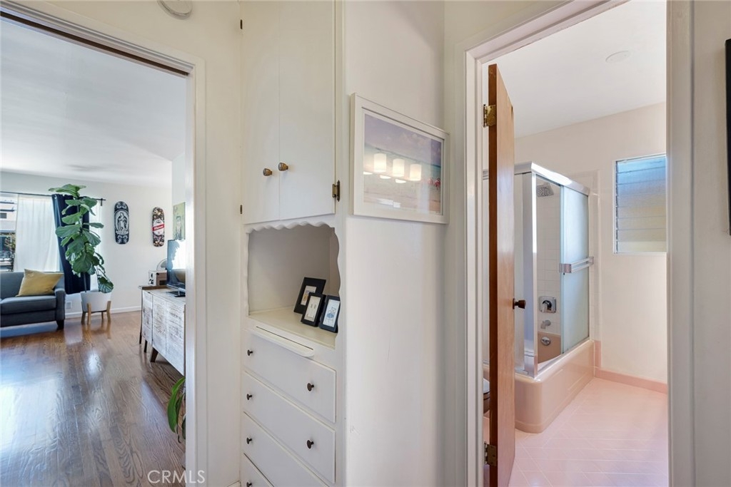 Welcome to this Bixby Imperial beauty! This move-in ready, centrally located Long Beach condominium features many wonderful benefits that are rare in this area, including an attached finished 1 car garage with storage area and driveway parking stall. A private end unit condo with 1 bed and 1 bath, the open floor plan with large windows allow for natural light and ocean breezes keep it cool year-round. The galley kitchen is gleaming and bright with newly tiled floors. Refinished wood flooring and fresh paint throughout add to the light and spacious feel. Additionally, there is an overabundance of built-in storage space including many roomy closets and cabinets. Original 1960's pink tile in bathroom adds to the charm and character. Community laundry room and several utilities (water, landscaping and trash) included in HOA amenities. Located near 4th Street/Retro Row, Bixby Park and Bluff Park neighborhoods which include a variety of shopping, dining and entertainment options. Blocks from Alamitos Beach and bike path which easily connects to Belmont Shore, Downtown Long Beach and beyond.