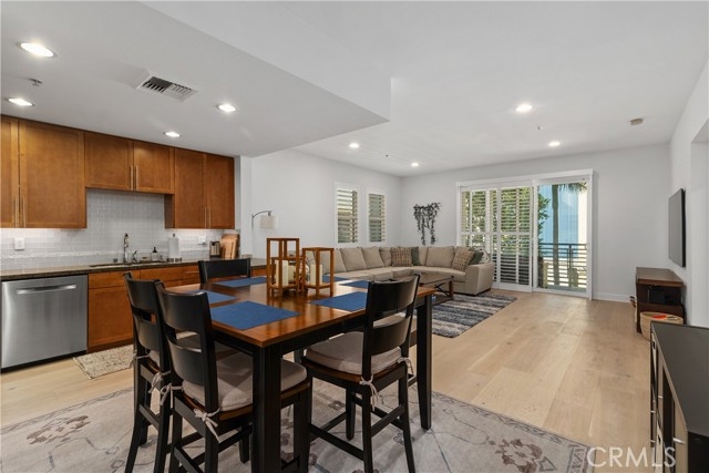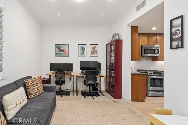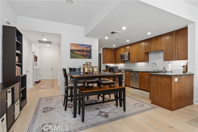 Experience coastal luxury living at Blu, a premier condominium community in the heart of the East Village Arts District in Downtown Long Beach—just blocks from the beach, Shoreline Village, and within walking distance to top restaurants, bars, and entertainment, with convenient access to the Metro Blue Line for an easy commute to Downtown Los Angeles. This spacious second-floor end unit features two bedrooms and two bathrooms, with a separate den/office area, and an open-concept layout with soaring 9-foot ceilings, new engineered hardwood floors, new plantation shutters, blackout shades, ceiling fans, and abundant natural light. The modern kitchen offers granite countertops, new stainless steel appliances, a glass tile backsplash, soft-close cabinetry, and seamless flow into the living area, perfect for entertaining or everyday comfort. The primary suite includes a walk-in closet with custom organizers and a spa-like en-suite bathroom with dual sinks, an oversized walk-in shower, and a built-in bench, while all closets throughout the home are professionally outfitted for maximum storage. Additional features include a private laundry room with built-in shelving, a wrap-around balcony with courtyard views and ocean breezes, two assigned side-by-side parking spaces in a secure gated garage, and a private 10' x 5' storage unit. Blu’s upscale amenities include a boutique-style lobby with a reading area and coffee bar, a courtyard with a fireplace, putting green, BBQ area, a fitness center, and a sports lounge with a billiards table and four TVs, including movie and sports channels. Pet-friendly and equipped with an upgraded security camera system, this exceptional home offers a rare opportunity to enjoy stylish, modern living in one of Long Beach’s most desirable communities.