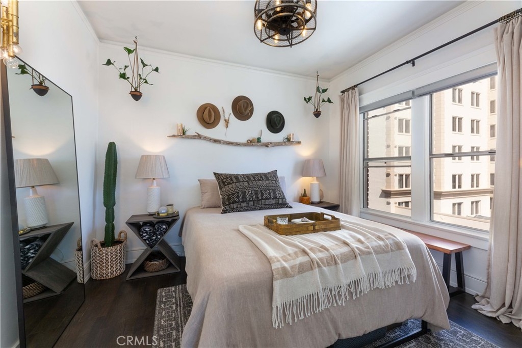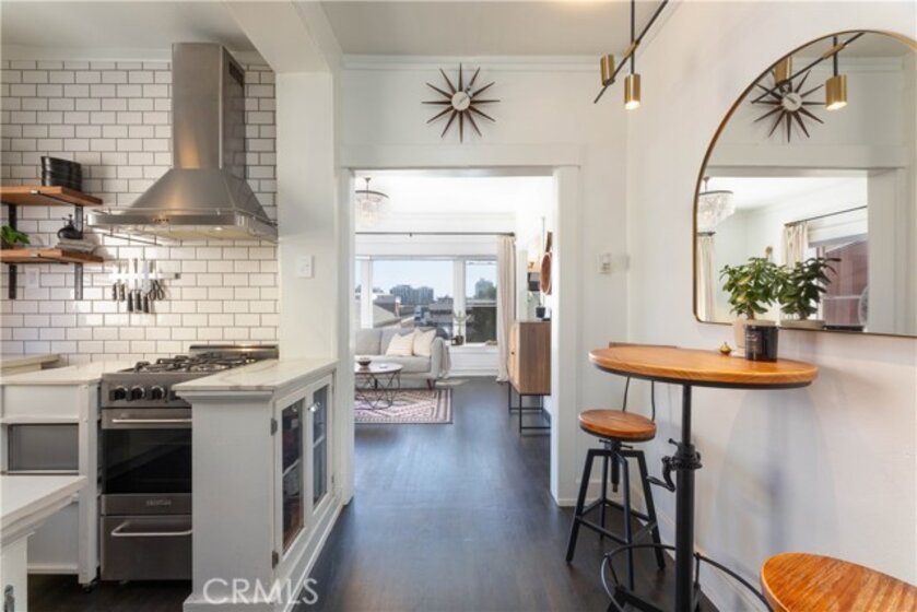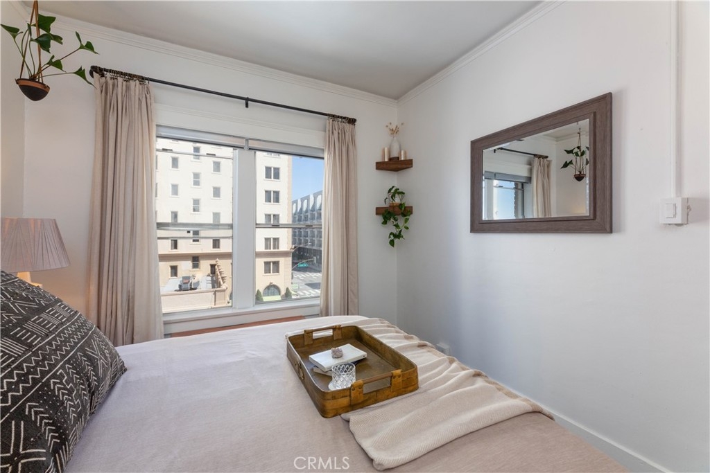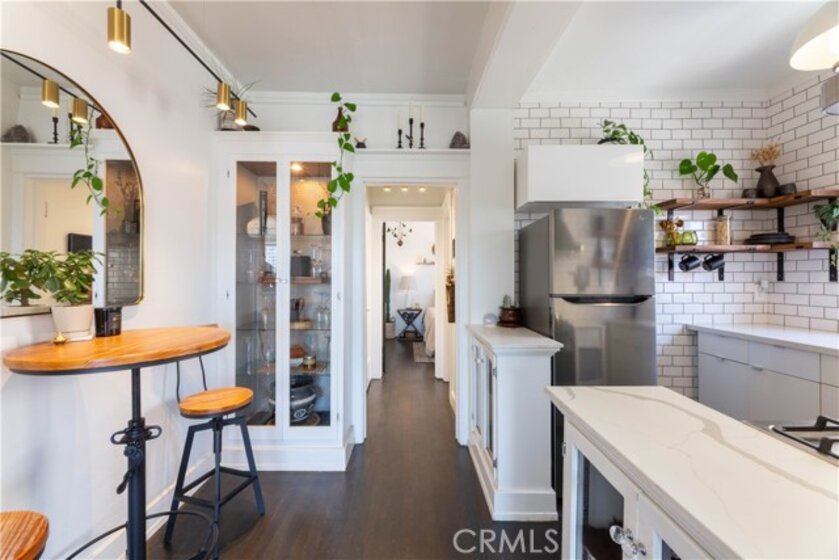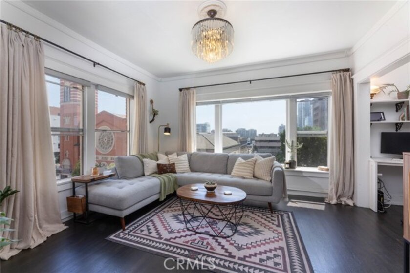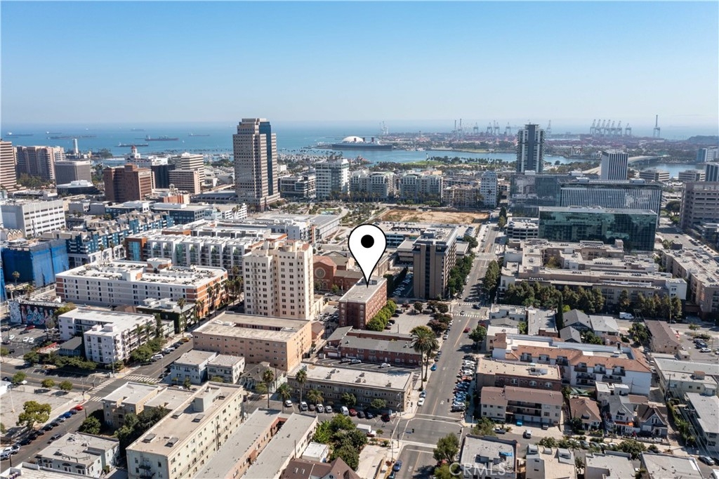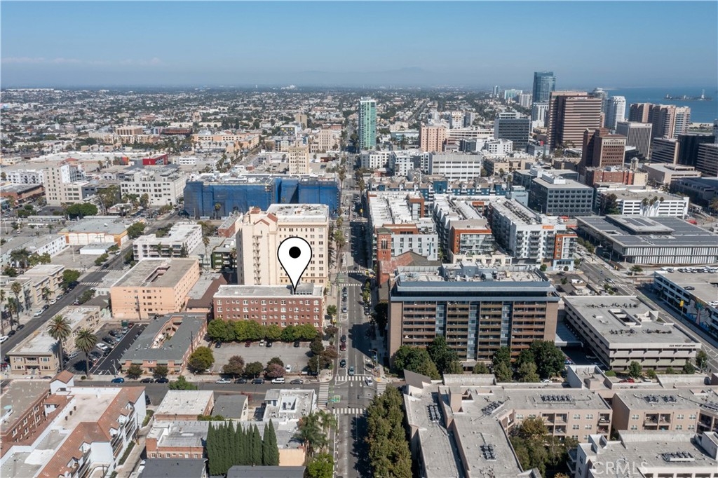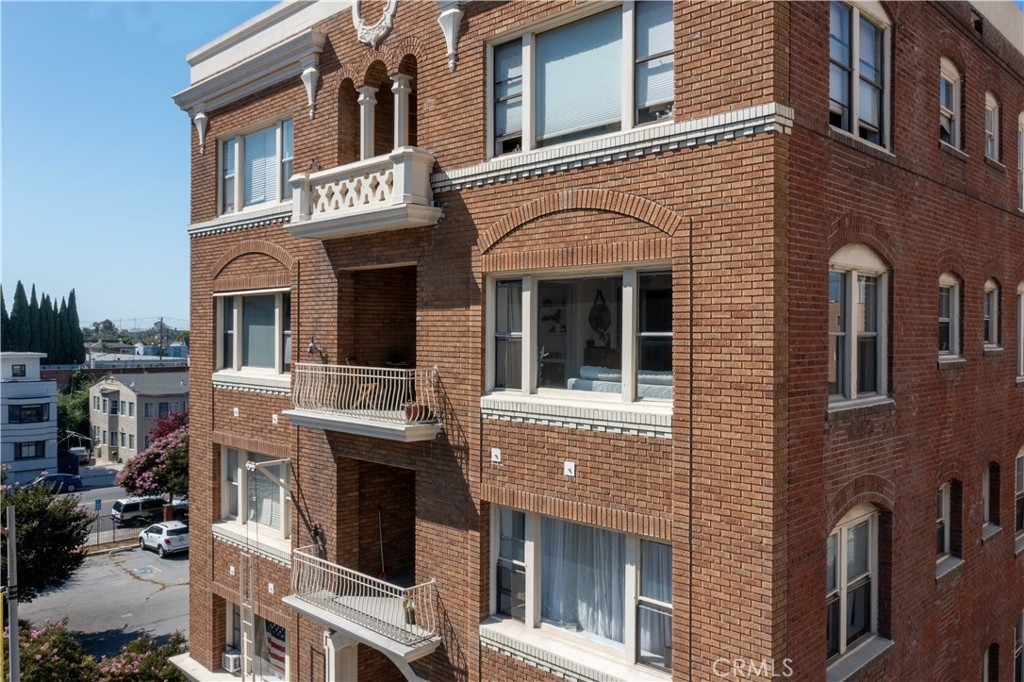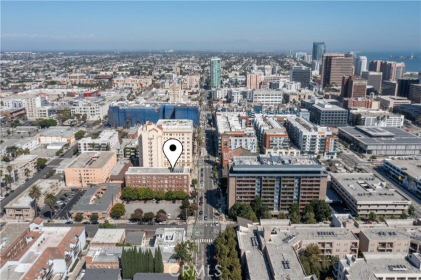 **Charming 1920’s 1-Bedroom Condo with Character in a Prime Location (just mins away from many attractions)** Step into a delightful piece of history at The Californian! This beaux-arts style brick building was built in 1923 by architect Joseph Roberts. Unit 401 is one of nine "double" units in this 49-unit condo building, and is a south-east facing corner that has an abundance of natural light, pouring through its nearly floor-to-ceiling corner windows each morning. Rich in character, this home features beautifully refinished original hardwood floors, vintage crown moldings, upgraded stainless steel appliances and fixtures, subway tiles in the bathroom, floor-to-ceiling tiling in the kitchen, gorgeous built-ins, and tons of overhead storage. The spacious living room is perfect for relaxing or entertaining while enjoying beautiful downtown views. The kitchen combines modern convenience with classic touches, making it a joy to cook in. Owners also enjoy a rooftop solarium with views of downtown Long Beach, the Port of Long Beach, The Vincent Thomas Bridge and the Palos Verdes Peninsula. The HOA covers water, trash, gas, and all building maintenance; owners are only responsible for their individually metered electric bill and wi-fi. The building elevator was heavily updated in 2018 and recently painted. Key-fob secure mailroom. A basement laundry room is available to all residents which is accessible via cell phone app payment. There is also basement storage for each unit; this unit has two - a large and small storage unit, along with a locked communal bike storage room. Within close proximity just minutes away from nearby cafes/restaurants, trendy shops, and local parks, The Pike, The Queen Mary, Aquarium of the Pacific, East Village Arts District Public Transportation, FWY's and Ocean Boulevard to the beach. In addition to the attractions listed above, this condo is a sound investment when you consider: the Olympics is coming to Long Beach in 2025, Long Beach's upcoming developments near the water and the nearby beautiful public library cost $44 million to renovate. This rare condo offers the perfect blend of historic charm and modern convenience—don't miss out on making it your own!