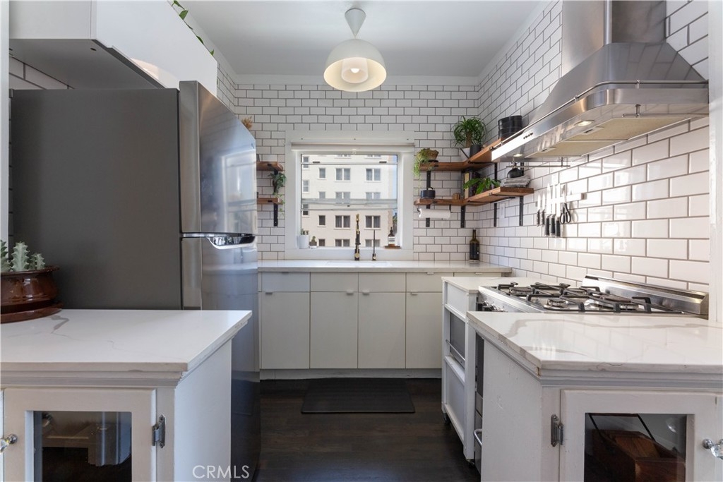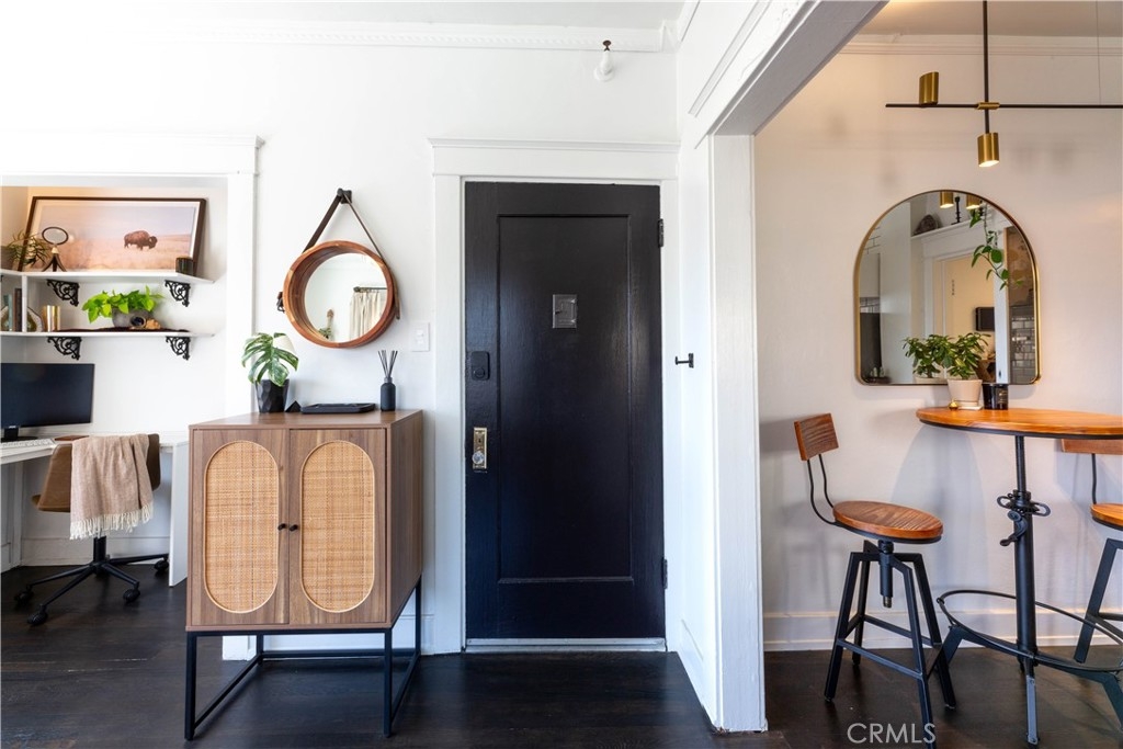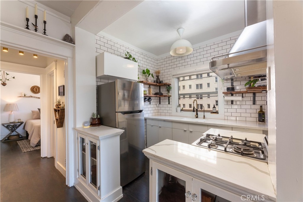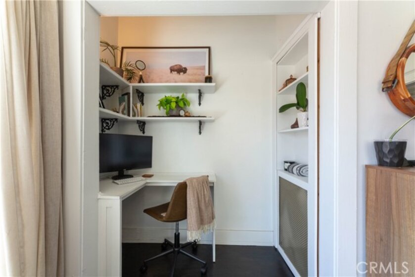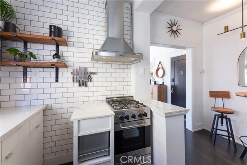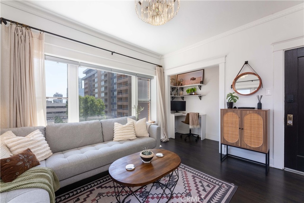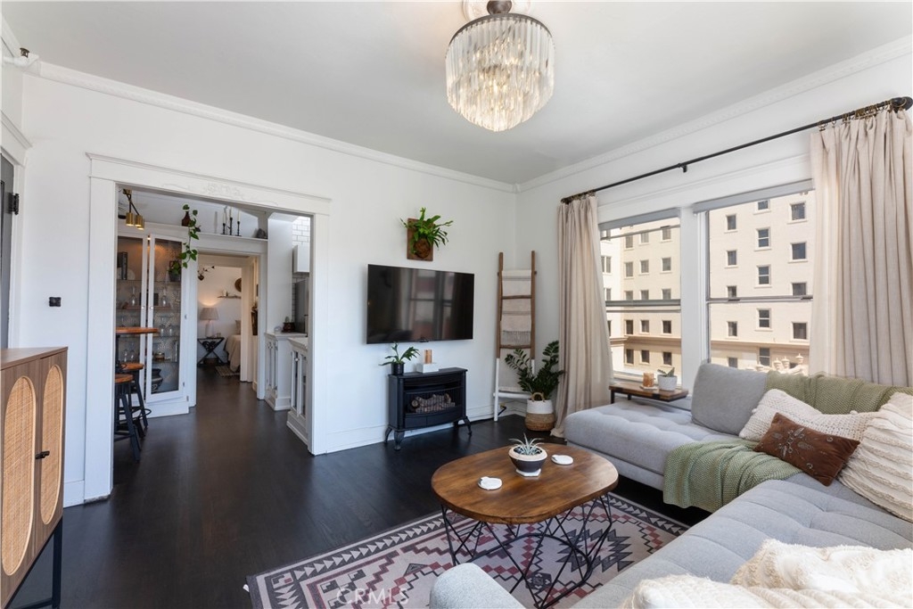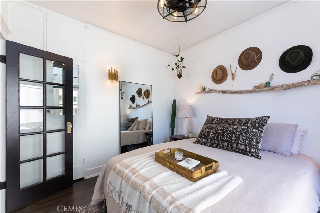 **Charming 1920’s 1-Bedroom Condo with Character in a Prime Location (just mins away from many attractions)** Step into a delightful piece of history at The Californian! This beaux-arts style brick building was built in 1923 by architect Joseph Roberts. Unit 401 is one of nine "double" units in this 49-unit condo building, and is a south-east facing corner that has an abundance of natural light, pouring through its nearly floor-to-ceiling corner windows each morning. Rich in character, this home features beautifully refinished original hardwood floors, vintage crown moldings, upgraded stainless steel appliances and fixtures, subway tiles in the bathroom, floor-to-ceiling tiling in the kitchen, gorgeous built-ins, and tons of overhead storage. The spacious living room is perfect for relaxing or entertaining while enjoying beautiful downtown views. The kitchen combines modern convenience with classic touches, making it a joy to cook in. Owners also enjoy a rooftop solarium with views of downtown Long Beach, the Port of Long Beach, The Vincent Thomas Bridge and the Palos Verdes Peninsula. The HOA covers water, trash, gas, and all building maintenance; owners are only responsible for their individually metered electric bill and wi-fi. The building elevator was heavily updated in 2018 and recently painted. Key-fob secure mailroom. A basement laundry room is available to all residents which is accessible via cell phone app payment. There is also basement storage for each unit; this unit has two - a large and small storage unit, along with a locked communal bike storage room. Within close proximity just minutes away from nearby cafes/restaurants, trendy shops, and local parks, The Pike, The Queen Mary, Aquarium of the Pacific, East Village Arts District Public Transportation, FWY's and Ocean Boulevard to the beach. In addition to the attractions listed above, this condo is a sound investment when you consider: the Olympics is coming to Long Beach in 2025, Long Beach's upcoming developments near the water and the nearby beautiful public library cost $44 million to renovate. This rare condo offers the perfect blend of historic charm and modern convenience—don't miss out on making it your own!
