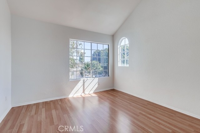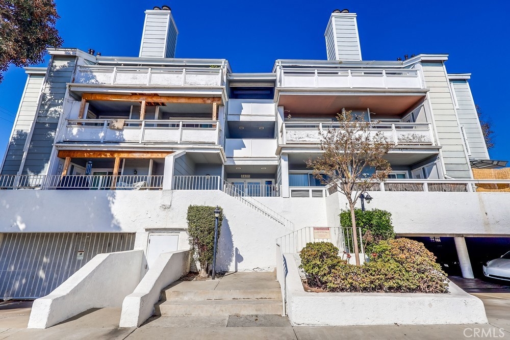 Don't miss this opportunity to purchase this large "top floor", 2 bedroom, 2 full bath condo with vaulted ceilings, and a balcony. Freshly painted throughout. Fireplace in living room. Newer quartz counter in kitchen Installed in October, 2025. Inside laundry is gas or electric. Easy care laminate floors. Move in condition. Close to P.C.H., Traffic Circle and lots of shopping and restaurants. Deeded secure parking space#21.Call today to view this lovely condo.