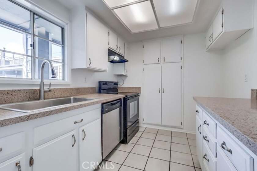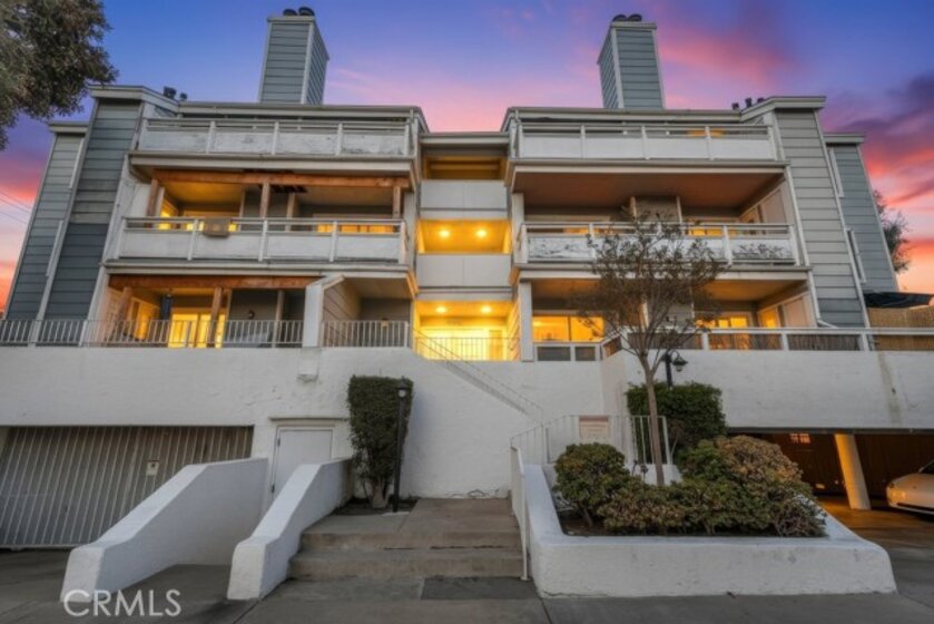 Don't miss this opportunity to purchase this large "top floor" 2 bedroom 2 full bath condo, with vaulted ceilings, and a balcony. Freshly painted throughout. Fireplace is in living room. Newer quartz counter in kitchen. Inside laundry hook up is gas or electric. Easy care laminate floors. Move in condition! Close to PCH, Traffic Circle and lots of shopping and restaurants. Deeded secure parking space # 21. Call today to view this lovely condo.