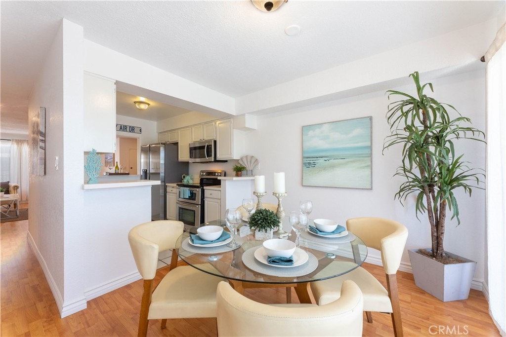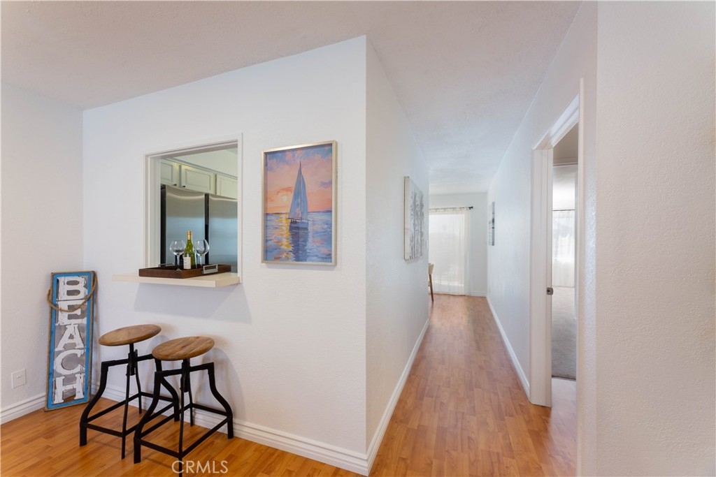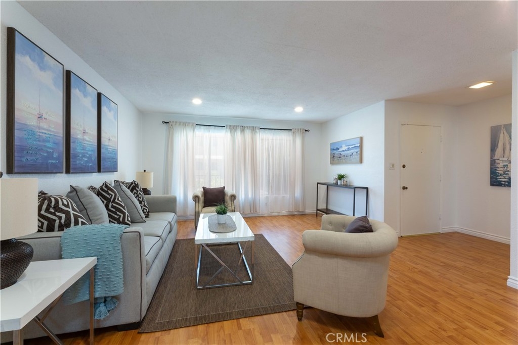 Welcome to this charming 1,171 sq. ft. condo, offering 2 spacious bedrooms and 2 bathrooms in a VA Approved building. The open floor plan effortlessly connects the kitchen, dining, and living areas—ideal for both relaxing and entertaining. The generous living room is enhanced by dimmable recessed lighting, creating a cozy, inviting atmosphere. The kitchen features sleek stainless steel appliances, including a microwave, dishwasher, and brand-new refrigerator, with an adjacent dining area perfect for enjoying meals together. The expansive primary bedroom serves as a peaceful retreat, with ample space for large furniture and more. Step outside onto your private balcony, which offers the option to install a mini-split HVAC system, as permitted by the HOA—a wonderful spot for morning coffee or evening sunsets. The second bedroom is also generously sized, featuring a walk-in closet. Both bedrooms are fitted with ceiling fans and new carpet for added comfort. The hall bathroom has been beautifully remodeled, adding a touch of elegance to the home. Freshly painted interiors make this condo move-in ready. Additional features include community laundry facilities and one designated parking space in the secure underground garage. Take advantage of this fantastic opportunity to own a spacious condo in a prime location close to all that Bixby Knolls has to offer, including trendy eateries, breweries, First Friday events, and top-rated schools.