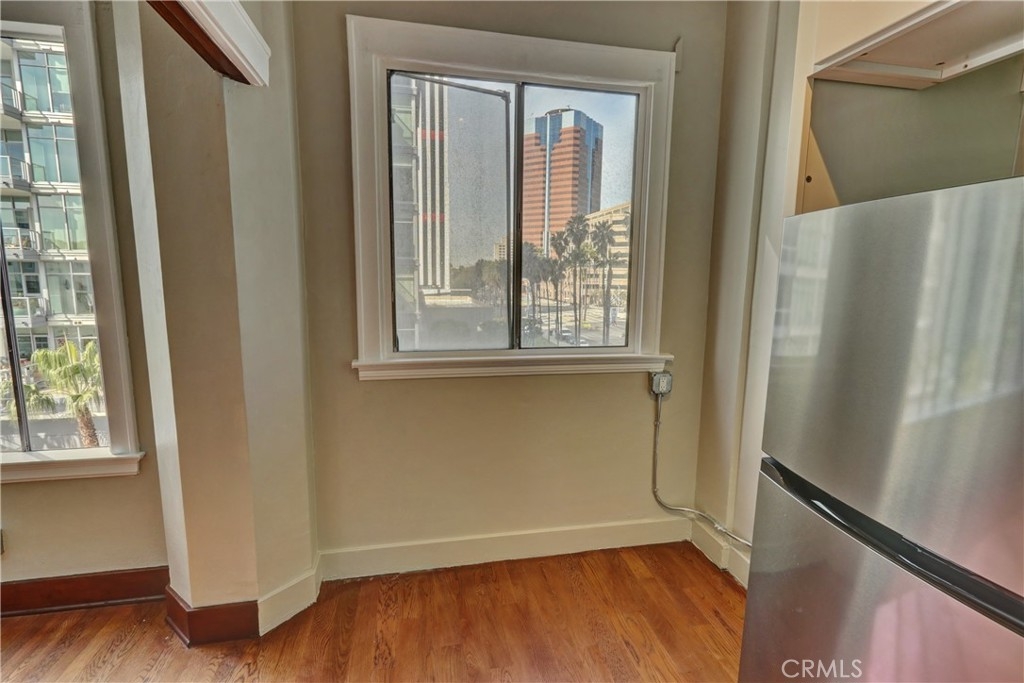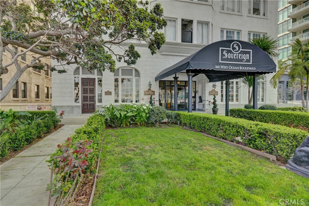 BACK ON THE MARKET. Welcome Home to this beautiful restored studio in the historic Sovereign in downtown Long Beach. As you enter the condo, you will be greeted by natural sunlight through the large windows adding to the openness of the unit. The owner spent $75.000 bringing this studio down to the studs. The kitchen and bathroom have been completely restored. The kitchen features Quartz counters, stunning cabinets, stainless steel appliances, new hardwood flooring and includes a dining area. The rebuilt bathroom includes Quartz counters, tile floors and a deep tub. SEE SUPPLEMENT FOR LIST OF IMPROVEMENTS. A unique feature in the unit is a large walk-in closet (one of two closets) which can also be used as a dressing room. The large open living area is ready for your creative touch which could include replacing the built in bookcase with a Murphy Bed. Alternatively some owners have created a separate sleeping area (see photos). You and your guests will love walking through the huge lobby entrance with beautiful marble floors and ample seating to relax and enjoy the atmosphere. The Sovereign solarium, accompanied by a large library, on the top floor of the building has the best views of any solarium in the city. You will overlook the Queen Mary, the ocean, the busy Long Beach/LA ports activity and the Long Beach Grand Prix. The building permits Airbnb, one of the few complexes in downtown that allows vacation rentals. HOA dues include gas, water, sewer and trash. There is a storage locker for your seasonal decorations, suitcases, etc. Cover parking is available next door for $100 a month. The Sovereign has a walkable walk score of 85. You will be close to dining on Pine Avenue, shopping at the Outlets, Aquarium of the Pacific, the convention center, theaters, museums and the METRO to downtown LA and points beyond is a six minute walk away. Some of the photos have been virtually staged.