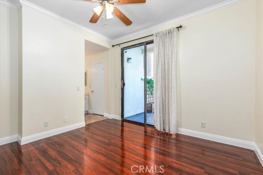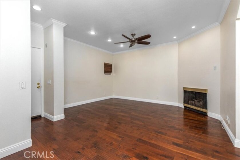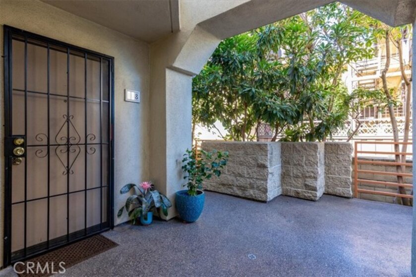 Stylish and move-in ready, this 2-bedroom condo in Bixby Knolls Terrace combines comfort, privacy, and a prime location near the Virginia Country Club. The home welcomes you with an EXPANSIVE WRAP AROUND PATIO shaded by mature trees, offering multiple access points for seamless indoor-outdoor living. Inside, the living room features rich hardwood-style floors, crown molding, recessed lighting, and a cozy gas fireplace. The updated kitchen includes stainless steel appliances, a gas range, and a French-door refrigerator, complemented by crisp white cabinetry and a breakfast bar pass-through to the dining area. Both bedrooms enjoy direct patio access, with the spacious primary suite featuring a walk-in closet and private vanity area. The bathroom is refreshed with modern fixtures, while the dedicated laundry room offers a full-size washer and dryer. The BEST part is NO SHARED WALLS with your neighbors! Additional highlights include central heating and air, ceiling fans, and freshly painted interiors that create a light and inviting atmosphere. The gated community provides a pool, spa, barbecue area, and secure subterranean parking with elevator access. One assigned parking space plus guest parking is included. The HOA is healthy, well-managed, and has already completed all required balcony repairs, giving buyers added peace of mind. Located in the heart of Bixby Knolls, this home is within walking distance to shops, restaurants, and boutiques, with easy freeway access while still tucked away in a peaceful residential setting.