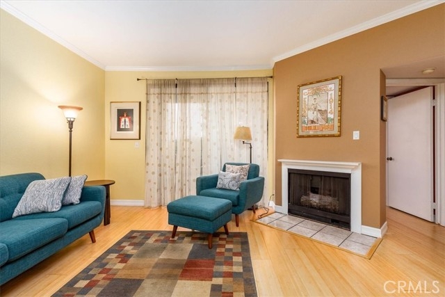 Welcome to Virginia Country Club, a highly sought-after community in Bixby Knolls! This beautifully updated 2-bedroom, 2-bath condo offers 1,070 sq. ft. of comfortable living space with a light and airy feel throughout. Step inside to an inviting open-concept layout featuring bamboo flooring, and a cozy fireplace in the living room. The private balcony is perfect for morning coffee or evening relaxation. The dining area opens seamlessly to the living space, ideal for entertaining. The modern kitchen boasts granite countertops, stainless steel appliances, a stylish backsplash, and ample cabinet space. A convenient in-unit laundry area with stackable washer and dryer sits adjacent to the kitchen. The spacious primary suite features a walk-in closet and en-suite bath with dual sinks. A second bedroom and full bathroom complete the functional floorplan. Additional highlights include newer central heat and air, abundant natural light, and two side-by-side parking spaces in the secured garage. Virginia Country Club offers controlled access, landscaped grounds, and close proximity to parks, shopping, dining, and freeway access. This condo combines modern upgrades with a fantastic location—don’t miss the chance to make it yours!