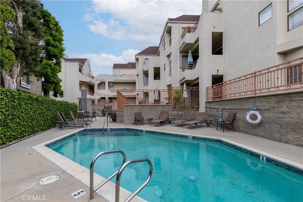 Beautiful, two bedroom two bath gated condo in the community of Bixby Knolls Terrace in the City of Long Beach. Enjoy the proximity to the beach, peaceful walks with your pet, or host dinner parties with the space you’ll have! Walking distance to multiple coffee shops, 5-Star restaurants, and entertainment! This is a large top-floor condo with views of the greenery, the city and pool. Upon entering the home, you step into the spacious living room, filled with natural light highlighted by panoramic windows and a warm, welcoming gas fireplace. Direct access to the balcony from the living room allows you to host and enjoy the outdoor space with family and friends.The living room seamlessly flows into the bedrooms, kitchen and the formal dining area. The kitchen offers plenty of cabinetry, updated quartz countertops, and with plenty of space to cook together! Washer and Dryer are located within the unit for easy access. The primary bedroom features high ceilings, ample storage including two closets, and a private bathroom with double sinks. The secondary bedroom also has it’s own private bathroom, a lot of natural light, and plenty of storage. This unit comes with assigned parking spaces behind the gate only accessible to residents. Additional guest parking is readily available. The sales price includes all appliances. Enjoy exclusive access to the refreshing pool or jacuzzi within the community. This condo has been meticulously maintained and is fully turn-key. Welcome home!