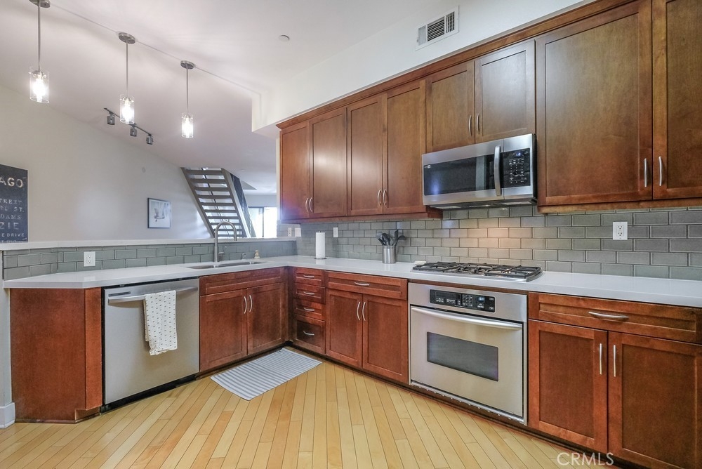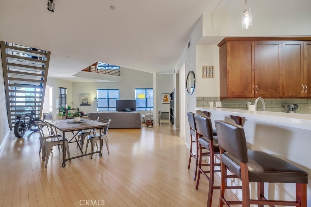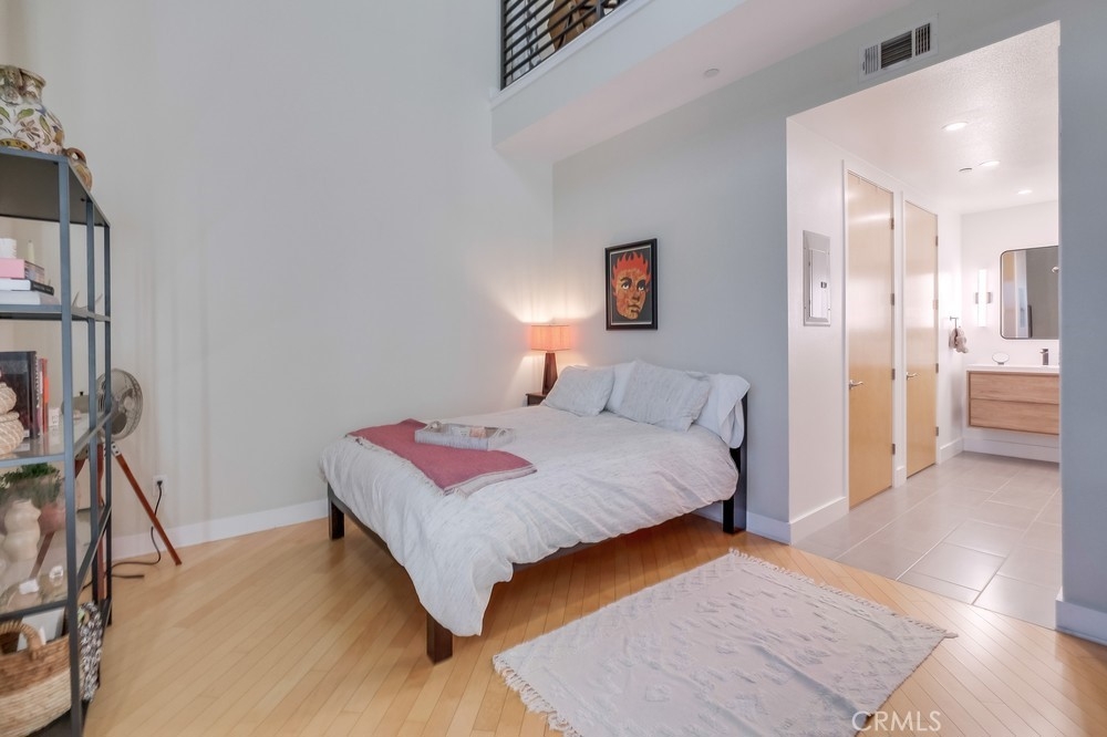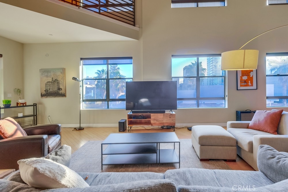Welcome to the East Village, the epitome of “hip” living within Downtown Long Beach! This 2700 plus square foot modern space features 20 foot ceilings, gleaming hardwood floors and an abundance of natural light. Boasting two levels of incomparable living space, the open floor plan can be configured to fit your personal lifestyle and the ability to comfortably add up to two more bedrooms. Newly upgraded kitchen is the envy of any chef, highlighting customized Quartz countertops, jade tile backsplash, custom cabinetry and top quality stainless steel appliances. Downstairs highlights also include an abundance of closet and pantry storage and a lovely outdoor patio balcony to enjoy sunsets and the energy of the Village. Second story mezzanine provides 1400 square feet to include a master suit with spacious walk in closets, and and a spa-like master bathroom with dual vanity, quartz counters, glass shower stall, and deep soaking tub. Dedicated laundry room adjacent to bathroom. Ample flex space available upstairs for personal gym, nursery or home office. This space could easily be transformed into a multi-bedroom layout. Two deeded parking spots in underground garage with additional guest spaces. The complex also provides a community room, exercise facility, and an adjacent lounge area. Located within steps of the beach, shopping, restaurants, nightlife, the Performing Arts Center and everything electrifying downtown Long Beach has to offer. **Property is currently configured as a two bedroom space, tax rolls show it as a 1 bedroom.