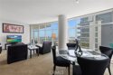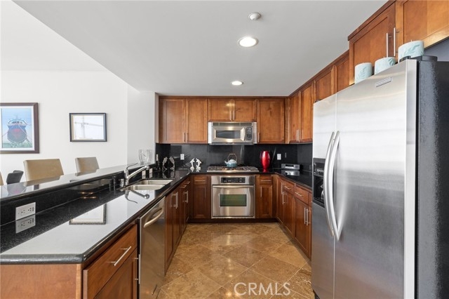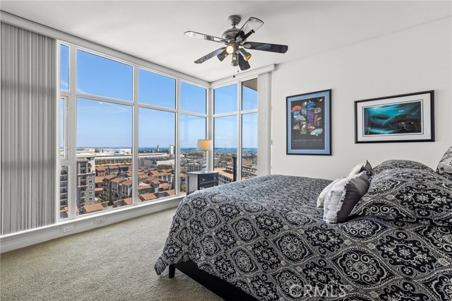 Price reduced! Furnished or unfurnished: 2 bedroom/2 bath + office, luxury condo in West Ocean Towers. Endless ocean views are what make this unit on the 12th floor special This end unit's "picture windows" captures views of the fascinating Queen Mary, cruise ships and witness spectacular sunsets. Everything is a short walk away, no need to get in your car to go somewhere, culinary restaurants are just steps away. The plush amenities of West Ocean Towers include a state of the art fitness center, 24/7 security, concierge, a temp controlled private wine locker, gated parking, controlled access throughout building, pool/spa/sauna, BBQ area, recreation room with full kitchen, library, fireplace, conference and media room. For those that demand excellence, this is hard to beat. Pamper yourself with this two bedroom condo, enjoy the resort lifestyle, and go have fun! The unit features upgraded bathrooms with Travertine stone, upgraded granite counters throughout, and Travertine flooring with mosaics throughout the walkways. The earthy stone compliments the colors of the sea. Plus there are two assigned, side by side, parking spaces in the garage, conveniently located in front of the elevator. The community areas are always clean and enjoyable to use. Make this your destination get away and enjoy the healthy lifestyle this attracts. Price excludes artwork, decor, utensils, cutlery, cookware, glass-ware, pots and pans and bedding/pillows/ personal items.