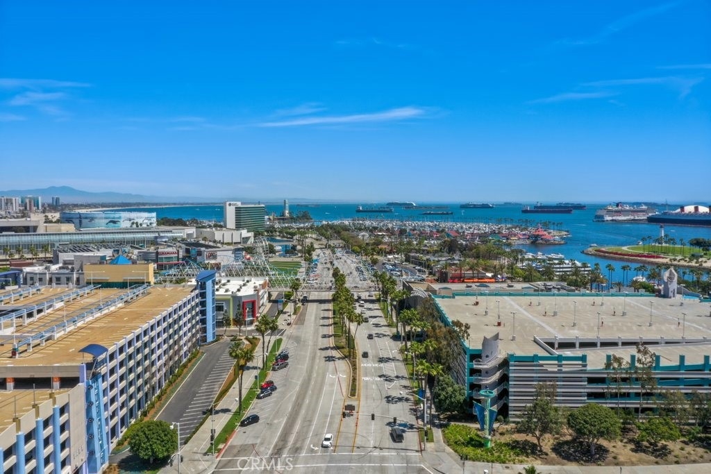 A beautiful home in Long Beach is ready for its new owners! Enter into the living room with tile flooring, wall-to-wall windows, and step-out balcony with gorgeous views of the city skyline. The living room flows seamlessly into the kitchen with granite countertops, beautiful cabinetry, and stainless steel appliances. Down the hallway, you will find the primary bedroom and the primary bathroom en suite. This gorgeous room with wall-to-wall windows has spectacular views of the city and is open and bright. The bathroom en suite has double sink vanity with granite countertops, a walk-in shower, and tile flooring. There is an additional bedroom and a full bathroom with a shower over a tub to complete this great home. The community has a pool and spa and other amenities. There is also a library and home has views of Queen Mary, Long Beach Harbor, Catalina, and Downtown Los Angeles. Close to shopping and dining this home has it all!