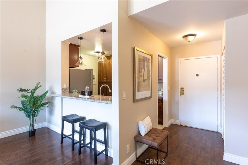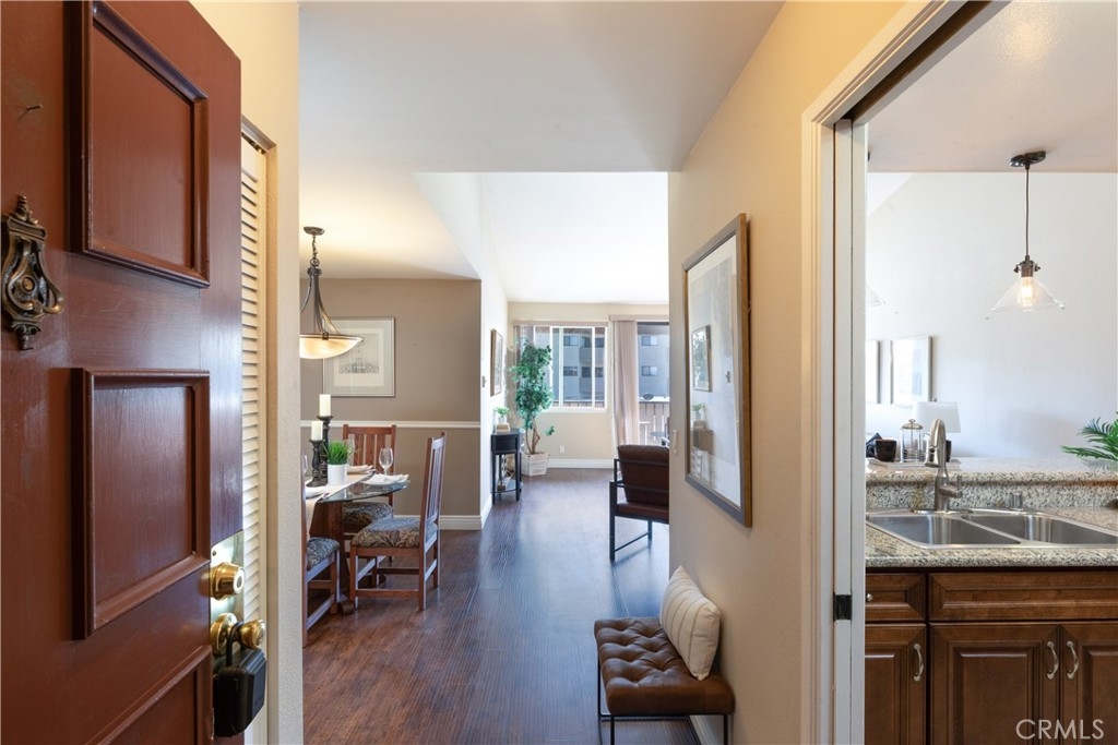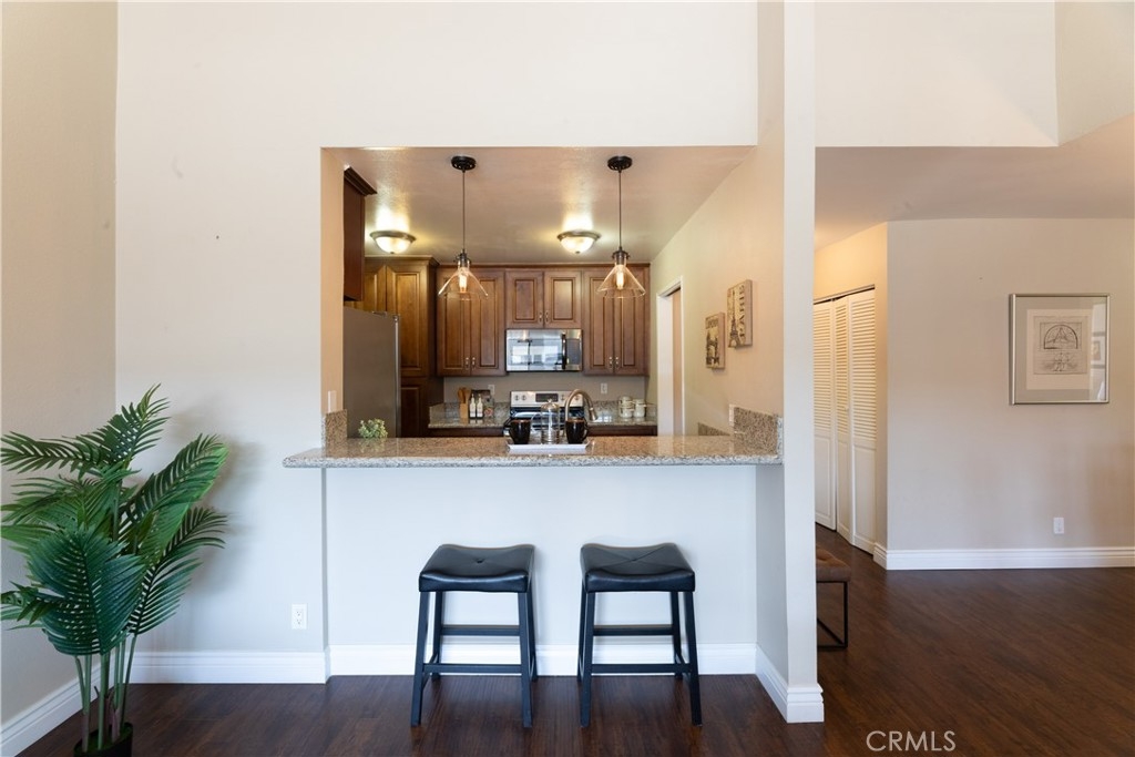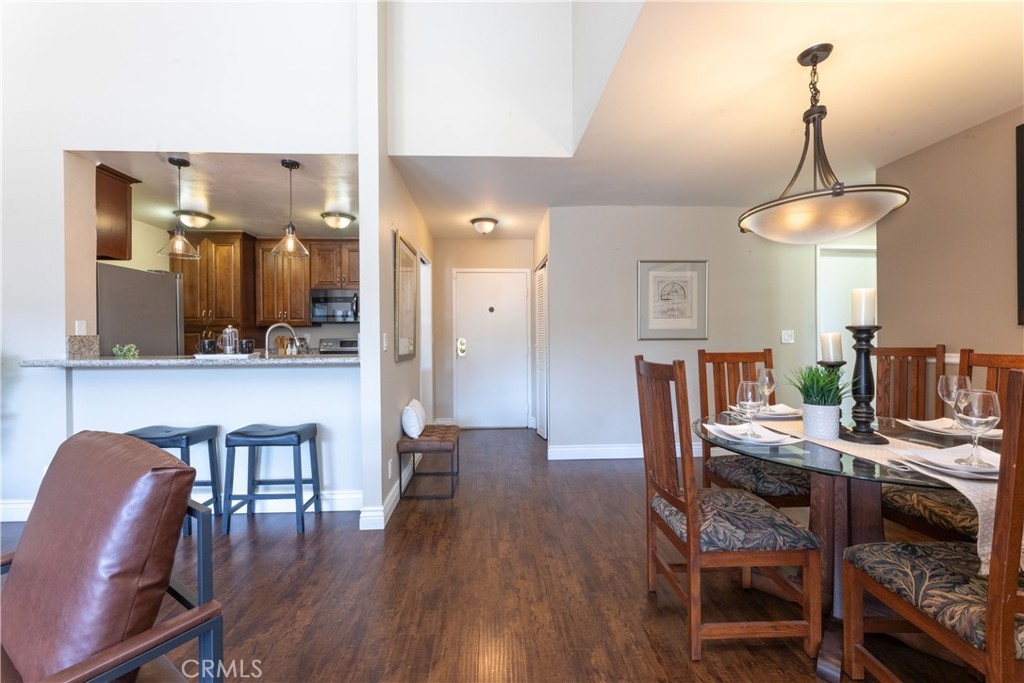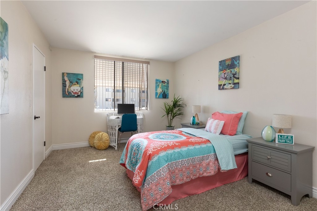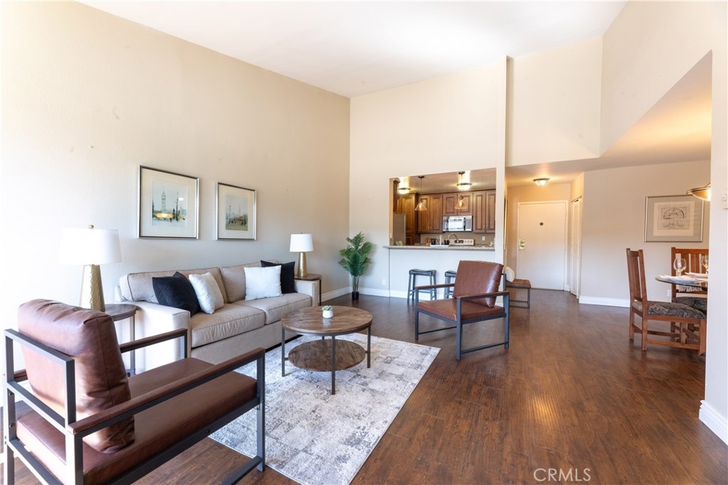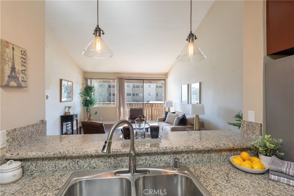 Rarely on the market, this large 3rd level-near elevator, top floor condo has views and 1156 square feet of living. The kitchen has granite counters and all stainless appliances including refrigerator with ice and water, new microwave and a dishwasher. The kitchen is open to living and dining rooms. The living room has vaulted ceiling and balcony. The extra large primary suite also has a balcony, walk in closet, and 3/4 bath and newer carpet. The guest bedroom is also a nice size and has newer carpet, with remodeled hall bath. Laundry is located inside this unit! Parking is 2 spaces, tandem in gated garage under building. Close proximity to Trader Joe's, Pet Food Express, Crunch Gym, and all things Bixby Knolls, breweries, eateries and schools. VA approved