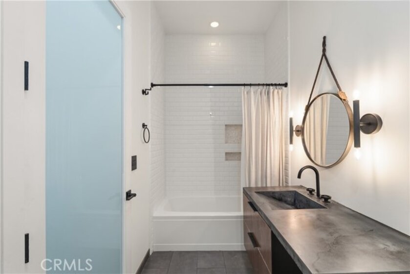 Welcome to the heart of downtown Long Beach—this penthouse condo has been thoughtfully elevated throughout. Enter through the skylit lounge into an open, airy layout with high ceilings, dark laminate wood floors, and floor-to-ceiling sliders that fill the living space with natural light. The open-concept kitchen blends warm and industrial design with black variegated tile, under-cabinet lighting, quartz countertops, and stainless steel appliances. The living room centers around a plastered fireplace with concrete feel, and opens to a spacious corner patio with vibrant city views that stretch all the way to the Palos Verdes Peninsula. Inside, you’ll find a spacious bedroom, with separate walk-in closet, in-unit laundry, and a full bathroom featuring a modern concrete vanity. Two dedicated parking spots in the subterranean, fully-secured parking garage add convenience. This home is walking distance to coffee shops, dining, shopping, entertainment, the Metro line, and a short drive to the beach and freeways. It's time to experience life at Newberry Lofts on Pine Ave!