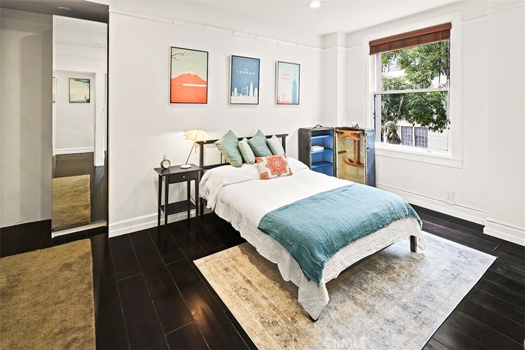 This stunning one bed / one bath condo combines classic charm with modern styling. 455 E. Ocean Blvd, #204 features an open floor plan, plenty of storage, and lots of light. The bright and airy bedroom has large closets, with french doors leading to the living room. There is a quiet nook, perfect for a home office, along with a kitchen pantry. Well cared for, this roomy unit features such as granite counters, sleek dark floors and historic architectural details. The charming private balcony overlooks the buildings courtyard and garden, while offering serene glimpses of the ocean. Located in the beautiful and historic Cooper Arms building, in the center of downtown’s restaurants, shopping and nightlife.