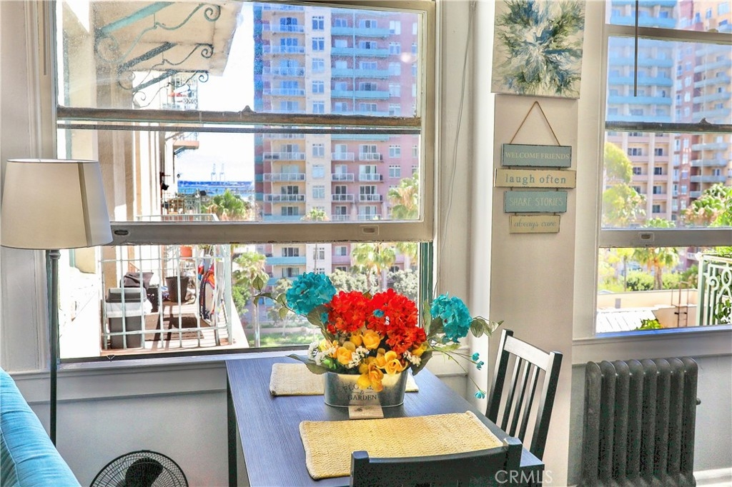 Historic Cooper Arms condo built in 1923 and perfectly situated on the 7th floor in the heart of downtown Long Beach. This classic studio unit tastefully blends original character with contemporary updates. Feel the ocean breeze and natural light shining through the sizable windows creating an open and inviting place. With peek-a-boo ocean views and stunning city lights, this location brings you to the center of the vibrant East Village Arts District. Custom built-ins and additional storage provide efficient living space. Additional amenities include a top floor solarium/game room, secured entrance, on-site management, courtyard with a BBQ, gorgeous Grand Salon on the main level, community laundry and a pet friendly HOA. It's within a few blocks of Pine Avenue's nightlife and restaurants, Shoreline Village, Convention and Performing Arts Center, Metro Blue Line and a short drive to California State University Long Beach. Note, secured parking is available for rent in nearby parking lots. Urban living at its finest. Welcome home!