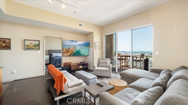 Breathtaking open air ocean Views of the beautiful Pacific Ocean! This beautiful condo has 10-Foot High Ceilings with beautiful hardwoods in the living room and both bedrooms. Slate tile in the kitchen, Both bedrooms offer walk-in closets, and the main room has suite bathroom. The kitchen boasts Granite Counter- Tops & all appliances including an in-unit Laundry Room w/full size washer/Dryer. For Your Comfort there is Central AC & Heating. Stunning Views from living room and bedrooms, 2 Private Balconies Secure Gated I Assigned Parking Space in the underground garage. HOA monthly fees includes Water, 24/7 Security Concierge, Fitness Center & Sauna, club Room with & Business Centers high speed internet through Frontier. Enjoy the short distance to the beach, miles of biking trails, the metro lines, local restaurants and shops. Night life & entertainment venues including the Terrace Theater with the dancing fountains. the Pike. the cinema. Hast Village and so much more!