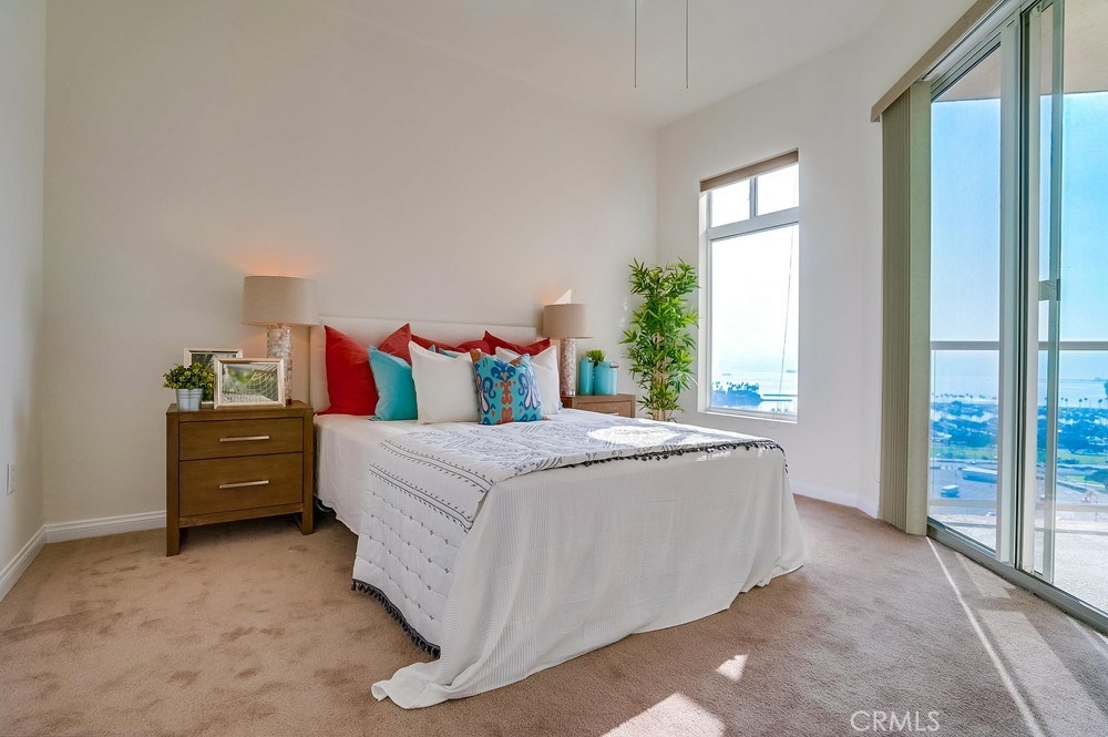 JUST REDUCED! Investment opportunity - tenant occupied. From this lovely condo situated just below the penthouse level, you will enjoy views of the Long Beach coastline sand, the Queen Mary, Carnival Cruise line, Shoreline Village and the marina. This great condo just received all new stainless kitchen appliances, new carpet and new paint. The corner, private balcony connects to the living room and the 2 master bedrooms. There is also a breakfast bar great for entertaining. You will also enjoy central A/C and heat, in unit washer and dryer and huge walk-in closets in both bedrooms AND 2 deeded parking spaces. This urban delight also offers a short walking distance to the beach, biking trails, the metro lines, local restaurants and shops, entertainment venues including Performing Arts Center, the Pike, the movie theater, the East Village and so much more! You are also just steps from the dozens of seasonal festivals at Rainbow Park, and the annual Long Beach Grand Prix that you can actually be a participant of from your private balcony! Downtown Long Beach is known for its urban environment and home to the city's most popular tourist attractions. Visit the Queen Mary, take a short cruise on Carnival Cruise Line, or visit the renovated Aquarium of the Pacific. Long Beach is the 'city by the sea', just 26 miles across the ocean to Catalina! Call for your private tour! Tenant occupied through March of 2022, but a great investment opportunity.