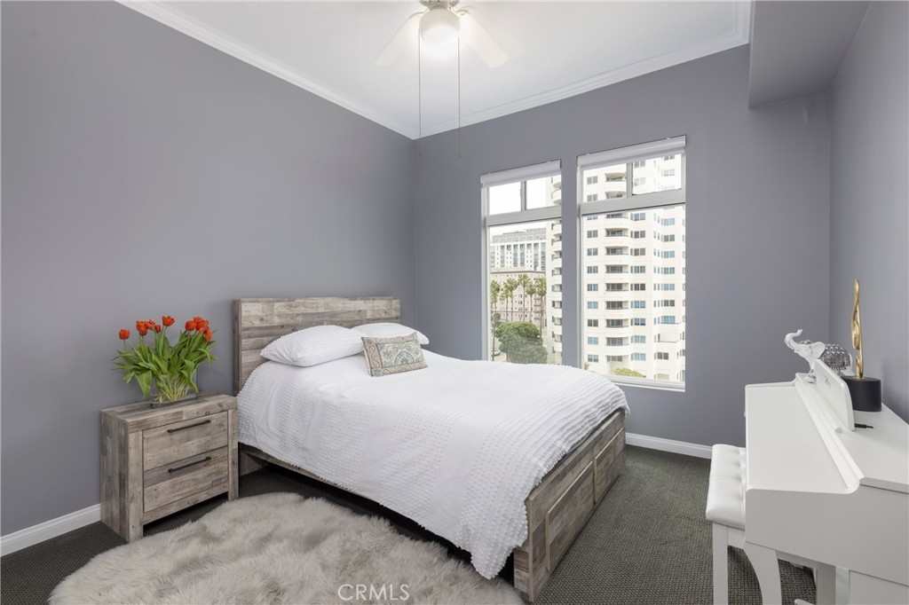Take advantage of all that Downtown Long Beach has to offer with this exquisite luxury high-rise condo with amazing views of the city, harbor, and Pacific Ocean. Upon entrance enjoy the open floorplan with an upgraded kitchen and multiple sliding doors that lead out to a wrap around private balcony. Large windows let in an abundance of light in this spacious 2 bedroom, 2 bath corner unit residence with the primary suite featuring a walk-in closet. Conveniently, there is an enclosed private garage with storage and an electric car charger plus an additional parking space. Enjoy resort like amenities such as a pool, spa, sauna, gym, 24/7 concierge, recreation room, and secure building. The beach, entertainment venues, and great restaurants are close in proximity. Seize this extraordinary opportunity to live in luxury!