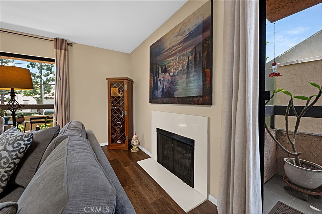 Beautifully upgraded 2 bedroom + den, 2 bath condo with approx. 1,697 sq ft of open living space in a secure, well maintained community. Features include composite wood flooring, electric fireplace, fresh interior paint, and four large private balconies recently resurfaced. Updated kitchen with new cabinets, countertops, refrigerator, dishwasher, and microwave. Private laundry closet with new stacked washer/dryer. Primary suite with en suite bath and versatile den ideal for office or guest space. Newer A/C and heating system. Two assigned parking spaces in secured garage plus large private storage unit. State Balcony Inspection passed and paid in full by seller; unit drains professionally cleaned and confirmed operational. Amenities include pool, spa, game room, secured guest parking, new secured mailboxes, and electronic lobby entry. Move in ready home near shopping, dining, and commuter routes.