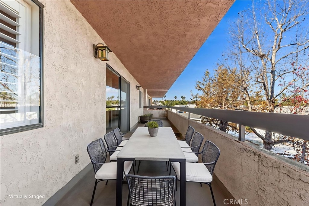 Beautiful 2-bedroom, 2-bath residence with a well-designed layout and elevated finishes throughout. Engineered hardwood flooring creates a refined ambiance, while the kitchen features granite countertops, designer backsplash, and stainless steel appliances. The spacious primary suite offers an en-suite bath with dual sinks, while the second bedroom includes its own private en-suite bath with a generous shower and extended counter space. Enjoy indoor-outdoor living on the long private balcony with neighborhood views, plus the convenience of in-unit laundry. Community amenities include pool, spa, and controlled access. Two side-by-side garage parking spaces included.