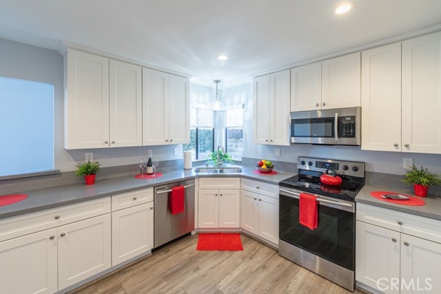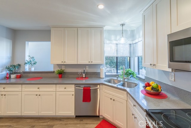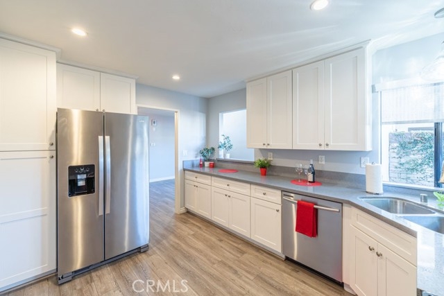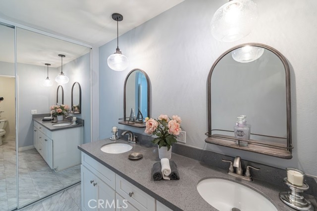 Discover this pristine and tastefully remodeled townhome featuring two spacious primary suites and three bathrooms, located in one of Los Altos’ best-kept secrets — The Fountains. This is truly a special community — the perfect find for those seeking the look and feel of a single-family home with the convenience and economy of a townhome. As you enter the gated development, you’ll immediately notice its beauty, meticulous upkeep, peaceful atmosphere, and the strong sense of pride shared by its residents. Inside, soaring 15-foot ceilings create a rich and comfortable feel. The bright and airy living room features a cozy fireplace and an oversized sliding glass door that opens to a private patio, perfect for relaxing and enjoying blue skies or entertaining guests. The open dining area flows seamlessly into the updated kitchen, which features dual windows overlooking the patio for effortless summer gatherings. Both primary bedrooms boast vaulted ceilings, generous closet space, and their own private bathrooms. The home has been freshly painted throughout and features new bedroom flooring, upgraded lighting fixtures, and modern window coverings in both suites. Additional conveniences include central A/C and heating, along with a direct-access two-car garage offering washer and dryer hookups and ample storage space. Enjoy resort-style living with a newly remodeled pool, two spas, clubhouse, tennis and pickleball court, and beautifully landscaped grounds highlighted by seven tranquil fountains. Ideally located within walking distance to the Los Altos Shopping Center, restaurants, entertainment, and CSULB, this home offers the perfect combination of comfort, convenience, and charm. Come see it for yourself — you won’t be disappointed!