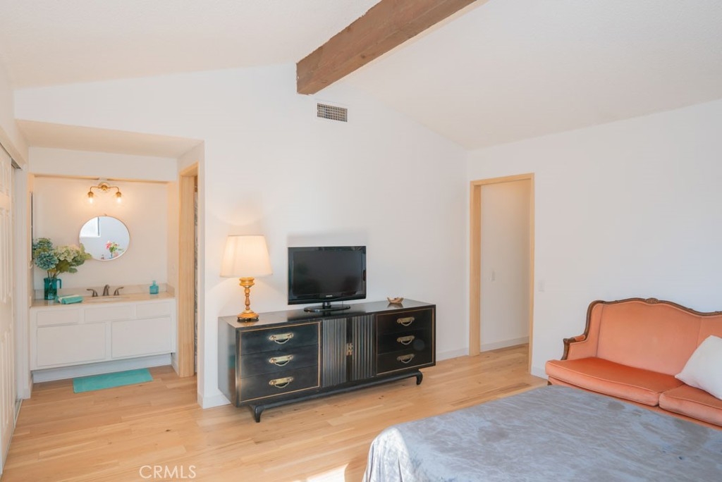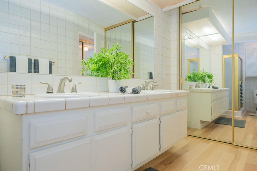 Updated Mid Century Townhome located in The Fountains, a Coveted Gated Community in the Heart of Los Altos / Long Beach. Updates to this home include New Hickory Wood Floors, throughout, including on the stairs, New Toilets, Freshly Painted throughout, New Furnace & A/C, Ethernet Wired and COAX throughout. This 2 Bedroom 2 and 1/4 Bathroom floorplan is a favorite in the community with 2 Master Suites and an Expansive Living Room with Vaulted Ceilings that Emphasize the Square Footage. The Main level of this home features a Gas Fireplace in the Living Area, Sliding doors out to a Private Patio, with New Acacia Flooring, Perfect for Indoor/Outdoor Entertaining. Also on Main Floor is the Living Area, Dining Area, Open Kitchen with New Stove, New Farm Sink, New Butcher Block Counters and a Touchless Faucet. The Lovely Powder Room has been partially renovated. These is also Direct Access to the 2 Car Garage. This floorplan is perfect for entertaining friends and family. The Double Master Suites are located Upstairs and each feature Generous Closets, Ample Storage Space, and their own attached bathrooms with a Double Vanity, and Plenty of Storage. The Fountains Community offers a Pool, Two Spas, a Club House and a Tennis Court. The Fountains Community is located Close to Freeways, Dining, Shopping, Entertainment, the Beach, the Airport, CSULB, and so much more. You will love making this property your New Home.